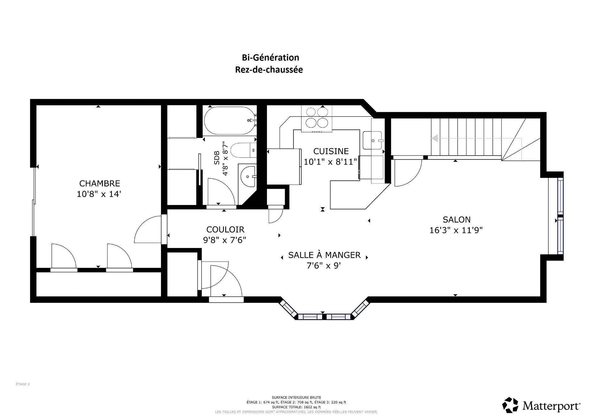 | Salle de bains | 8.0 x 8.7 P | Rez-de-chaussée | Céramique |