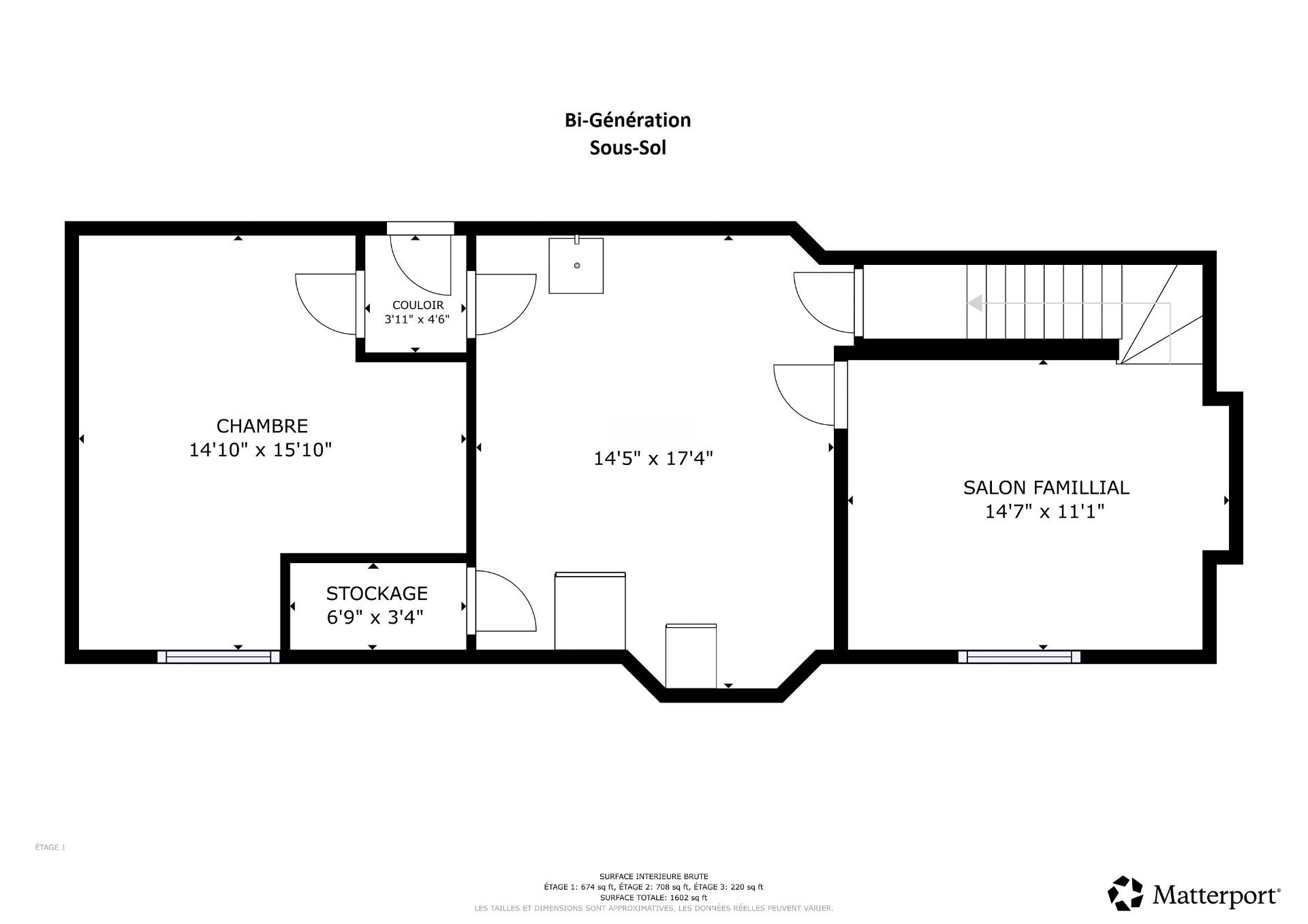 | Salle familiale | 14.7 x 11.1 P | Sous-sol | Parqueterie |