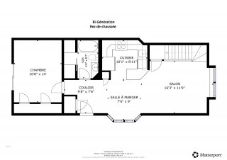 | Chambre à coucher principale | 16.7 x 10.8 P | Rez-de-chaussée | Parqueterie |