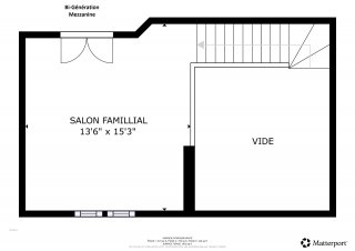 | Mezzanine | 13.6 x 15.3 P | 2ième étage | Parqueterie |