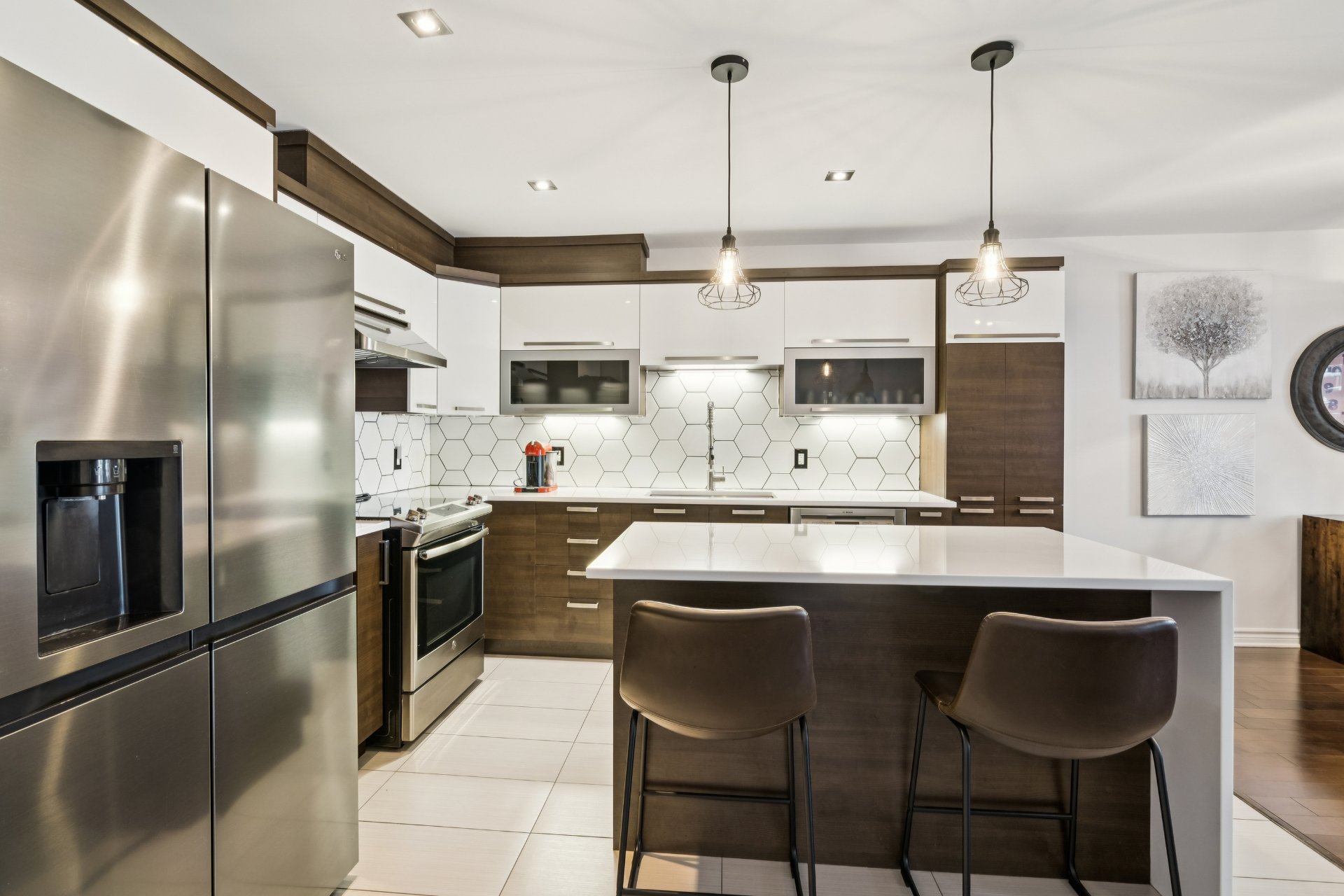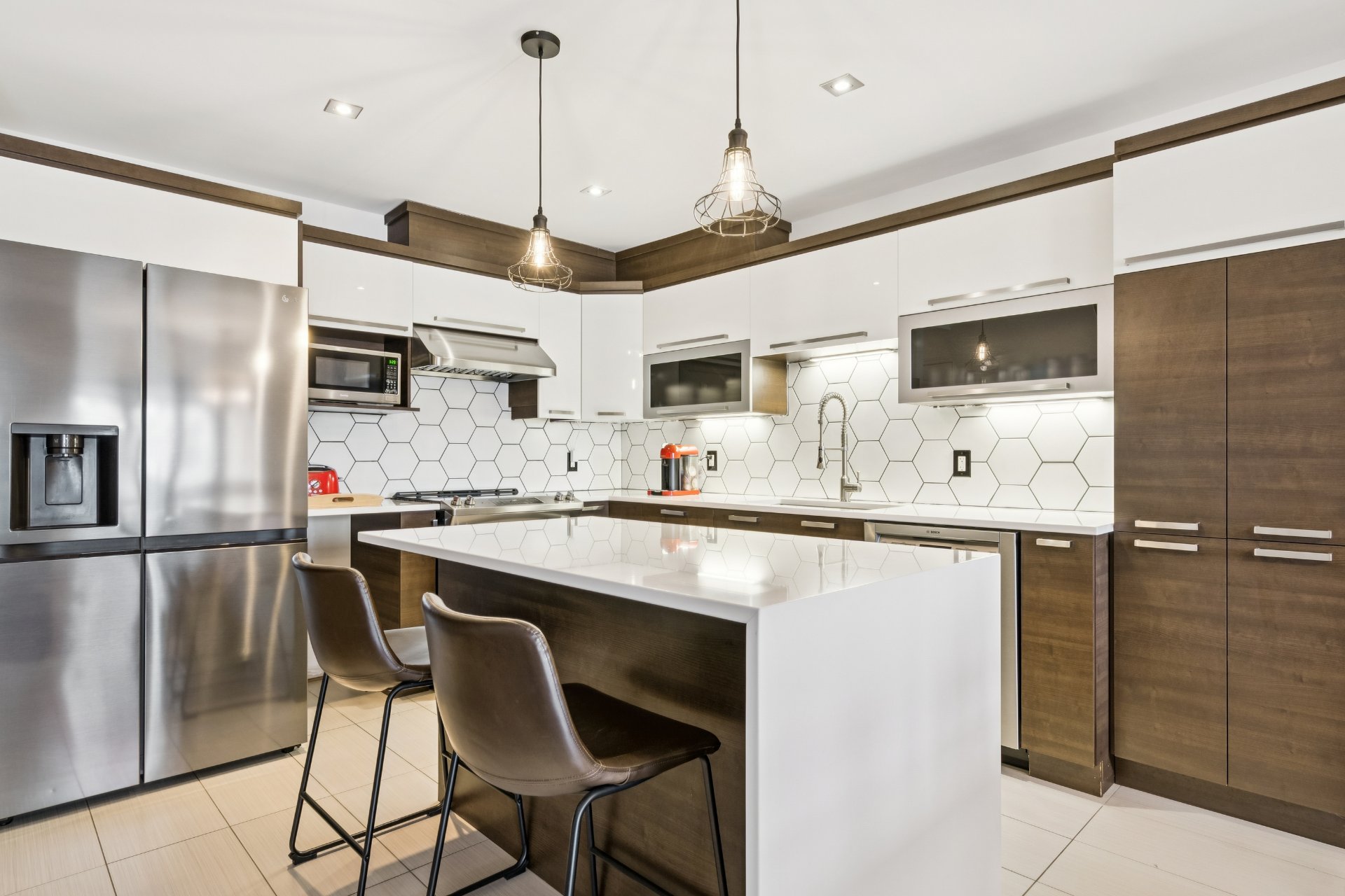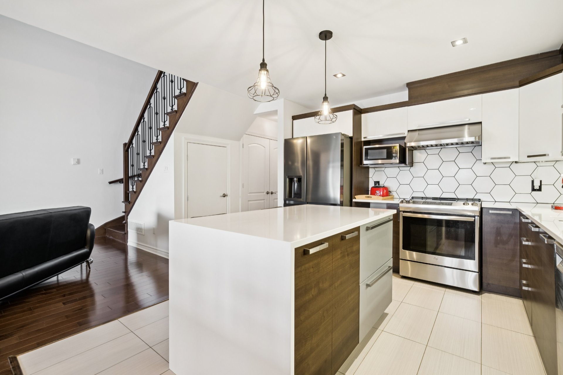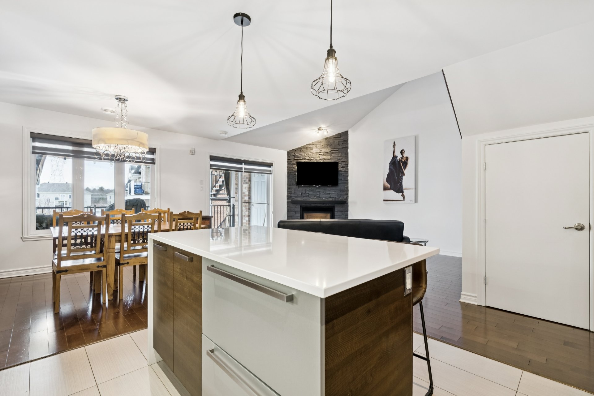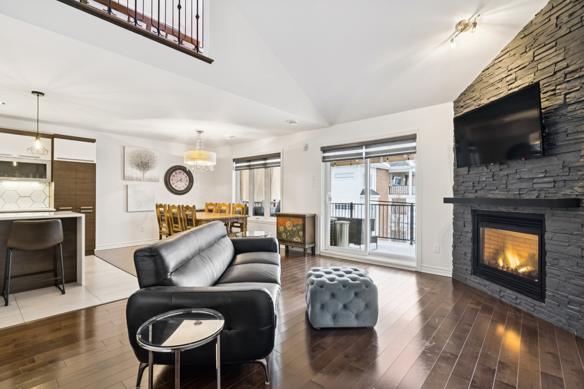 Superbe condo à Mascouche offrant un style de vie recherché! Profitez d'un espace lumineux à aire ouverte réunissant salon, salle à manger et cuisine, agrémenté d'un foyer au gaz naturel pour une ambiance chaleureuse. La propriété propose une mezzanine actuellement aménagée en chambre à coucher, idéale pour optimiser l'espace. Deux balcons, dont un avec sortie de gaz naturel pour BBQ, parfait pour vos moments de détente. Grand îlot central, système de chauffage et climatisation centrale pour un confort absolu. Un espace de rangement s'ajoutent à cette unité, en plus d'un garage et d'un stationnement extérieur.