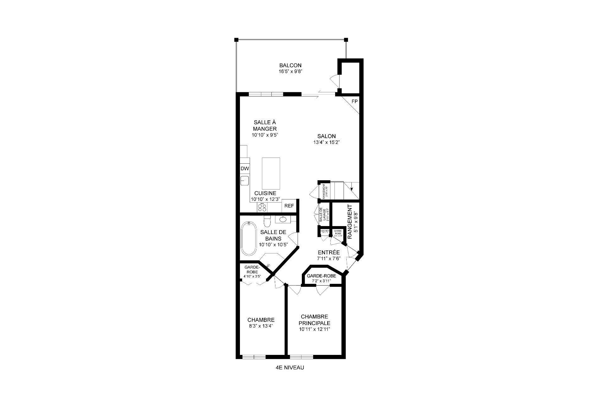 | Salle de bains | 10.11 x 8.0 P | 3ième étage | Céramique |