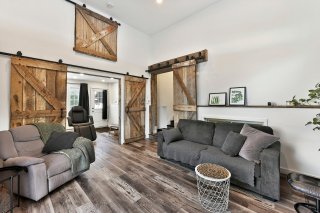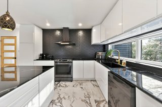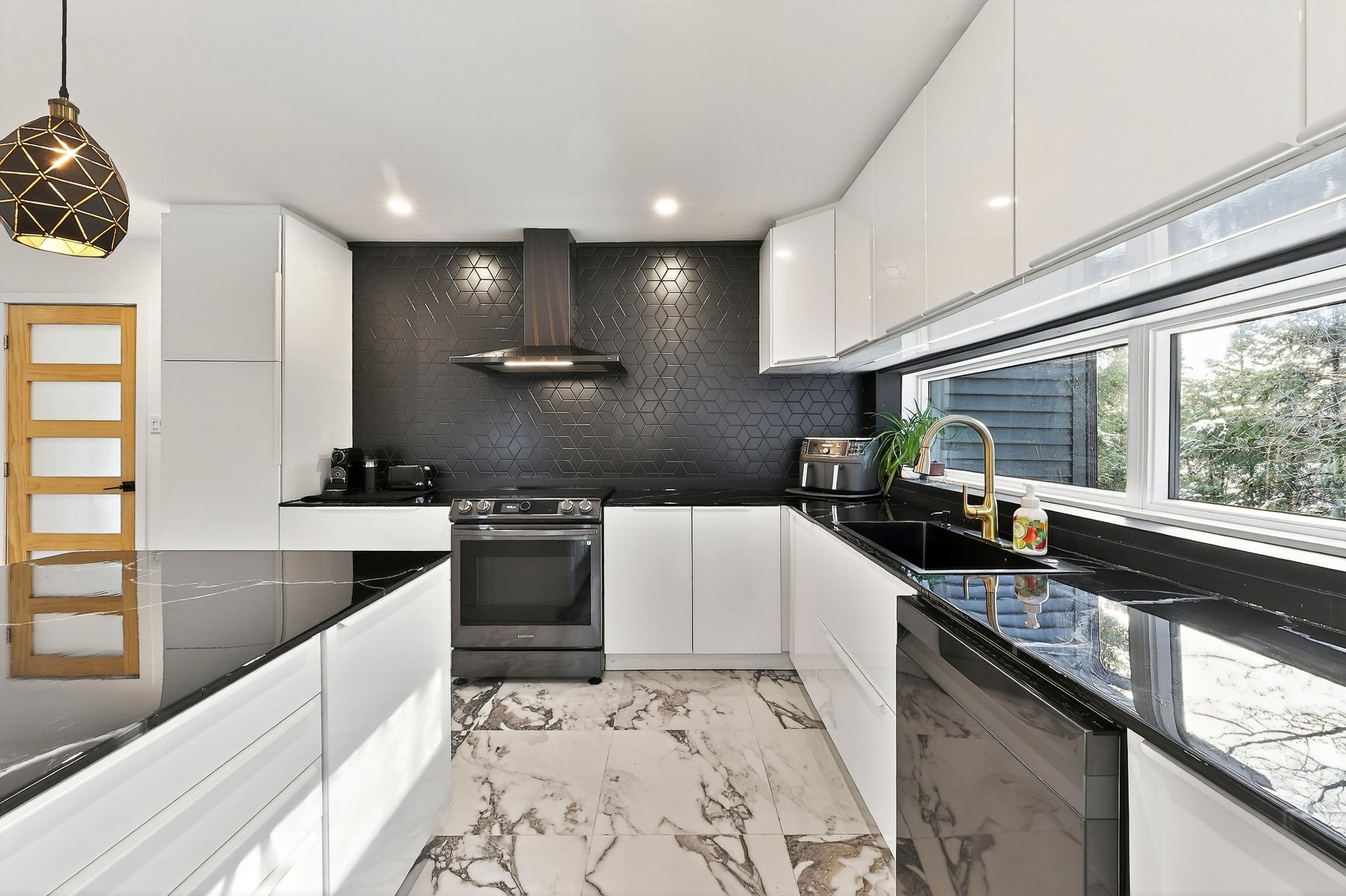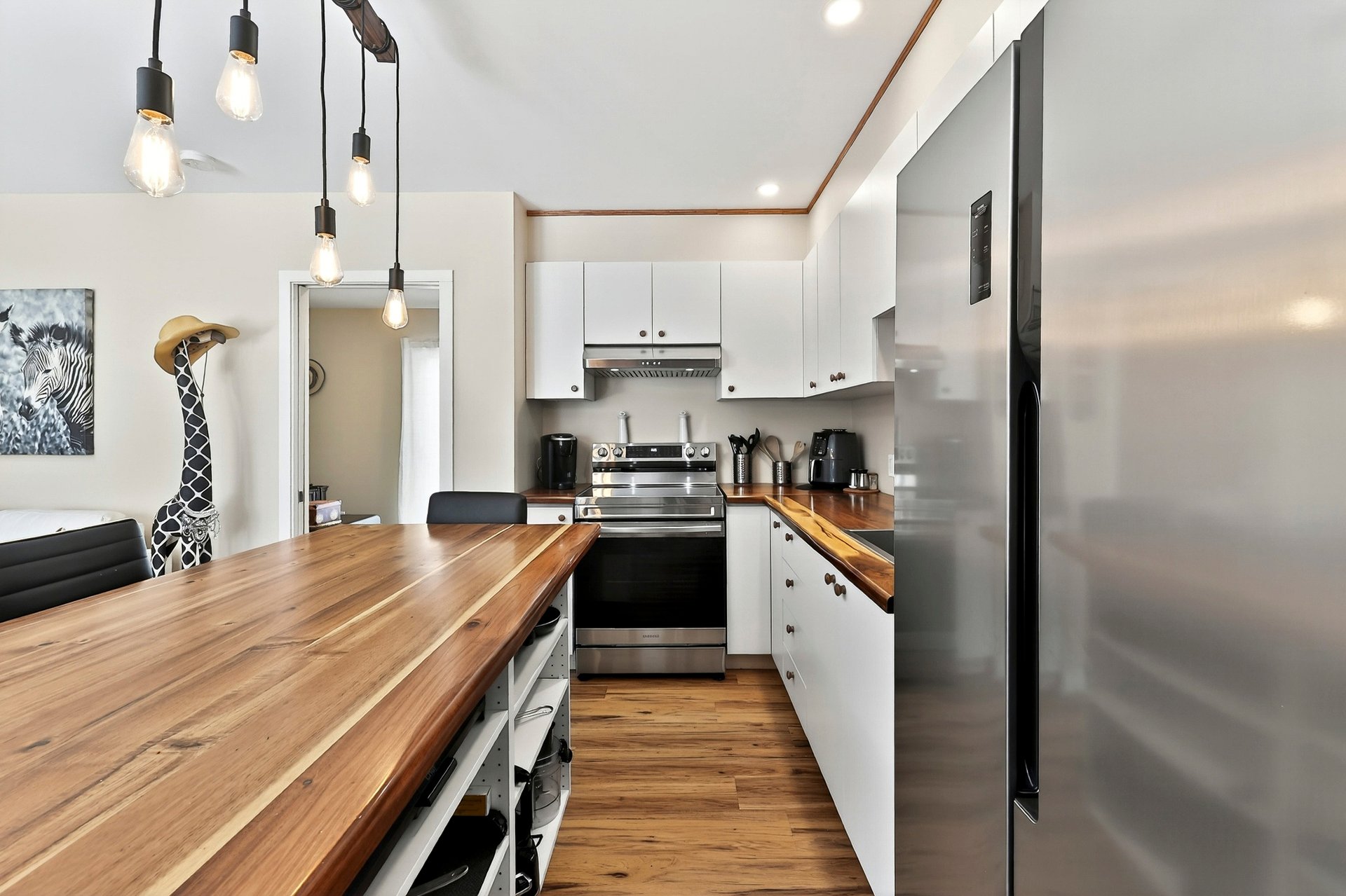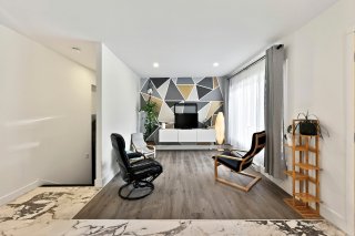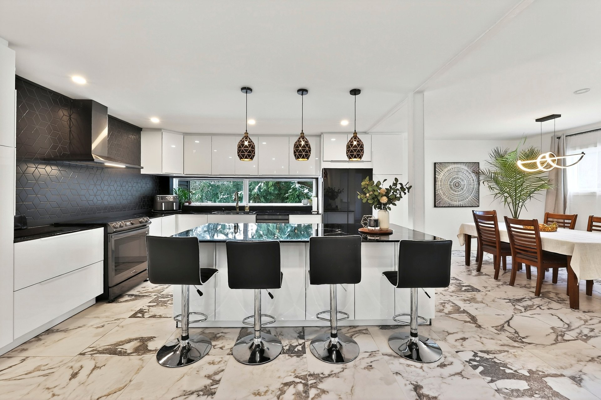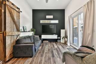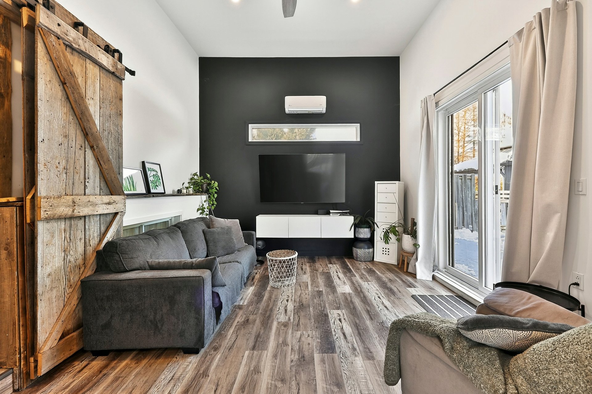 À l'intérieur, l'aire ouverte lumineuse et rénovée au goût