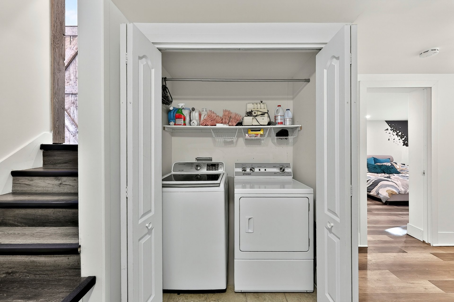Superbe bi-génération sur un terrain de 0,98 acre, avec piscine creusée et plusieurs rénovations récentes. Aire ouverte lumineuse au goût du jour. Située dans un secteur paisible, près du Trou de Fée, du Parc de l'Érablière, du Moulin Fisk et des services de Crabtree. Accès rapide aux routes menant vers Joliette. Une propriété clé en main offrant espace, confort et nature.