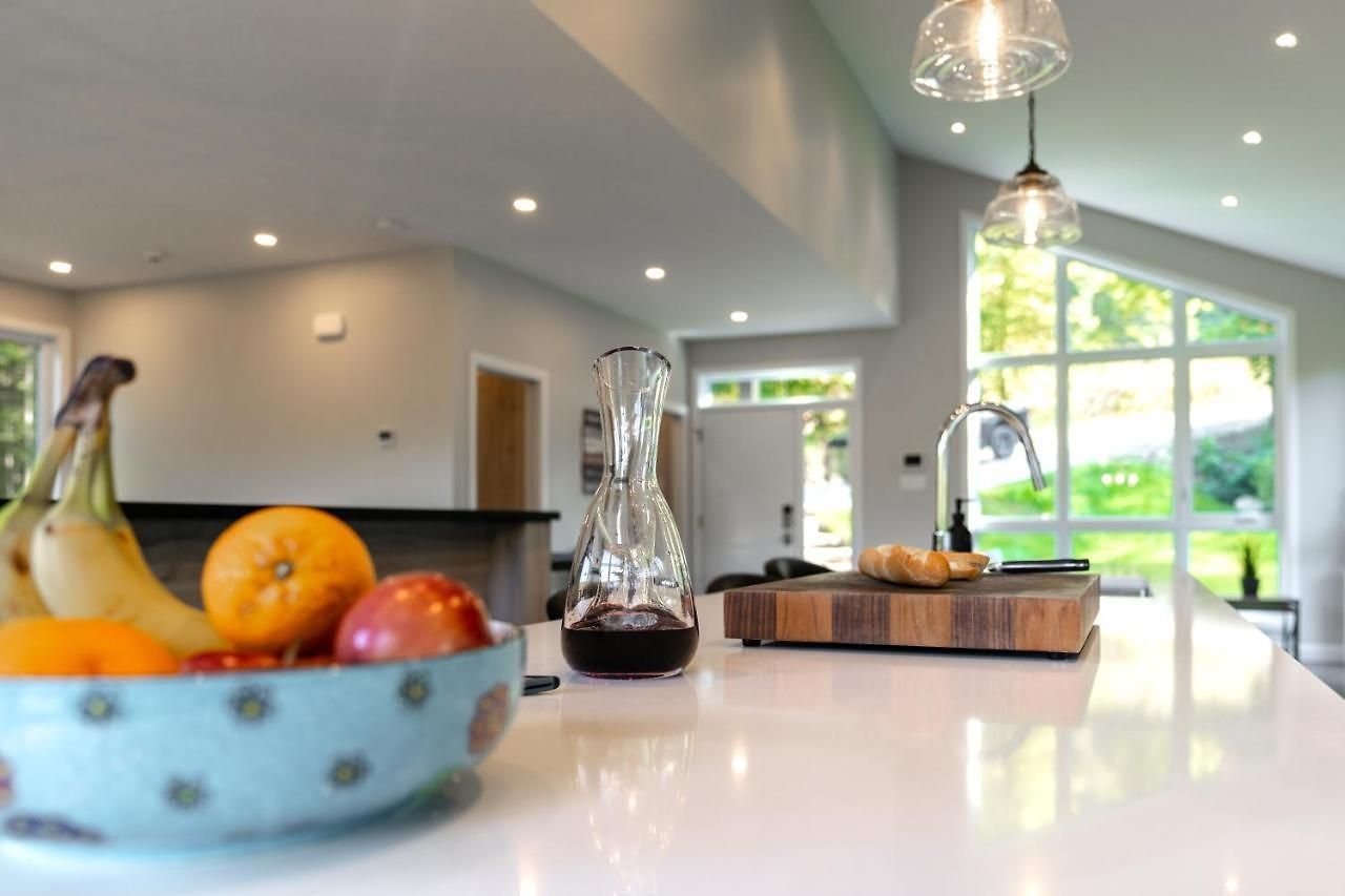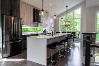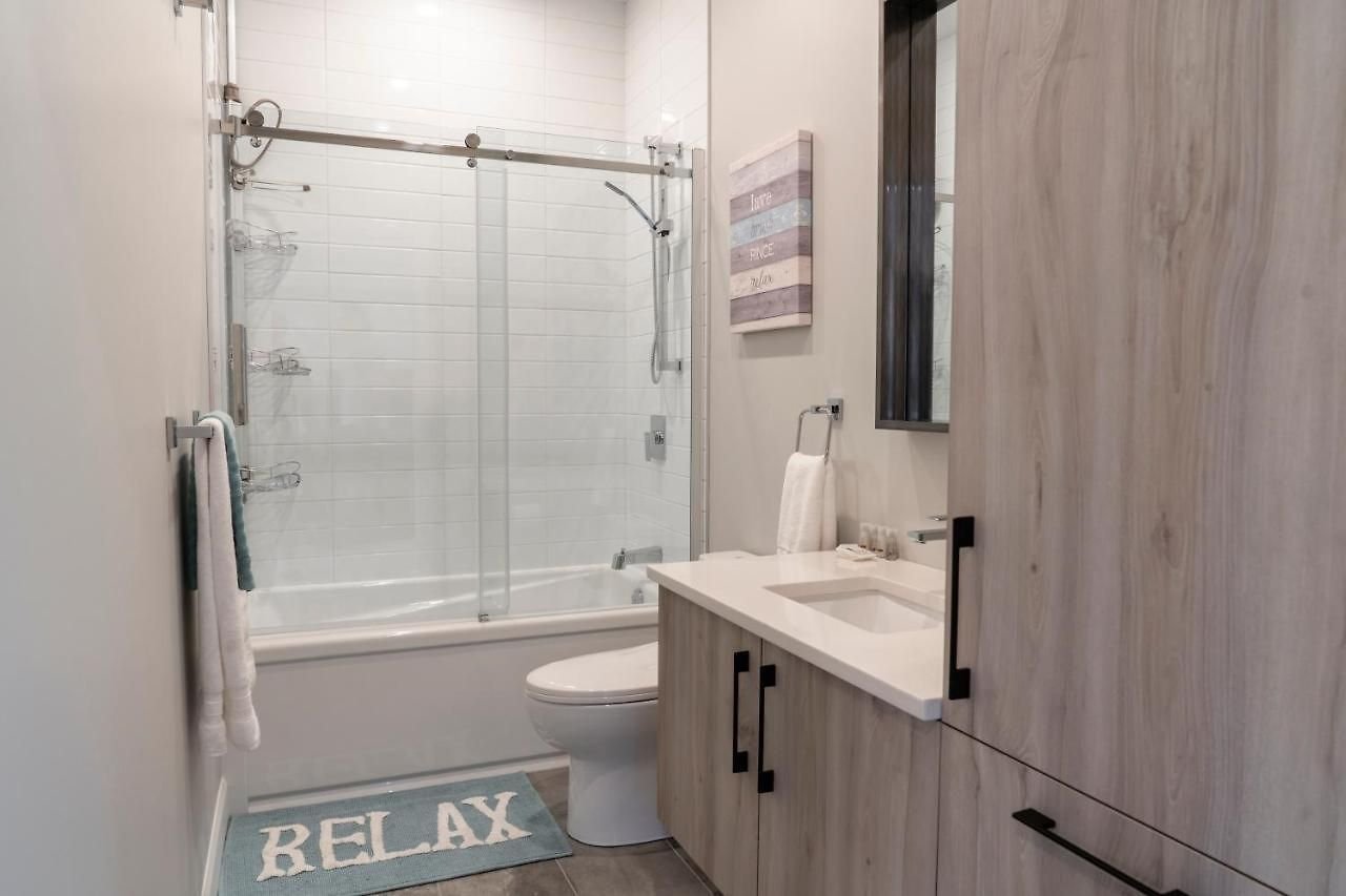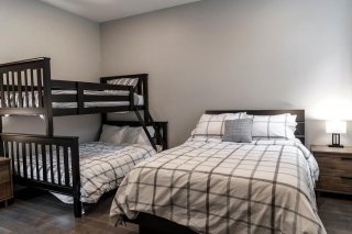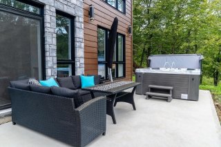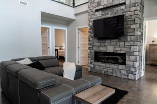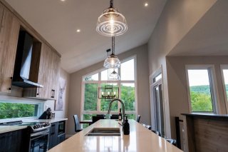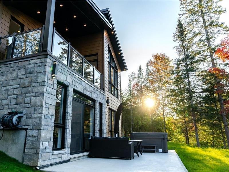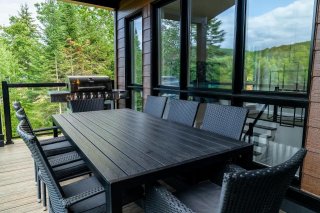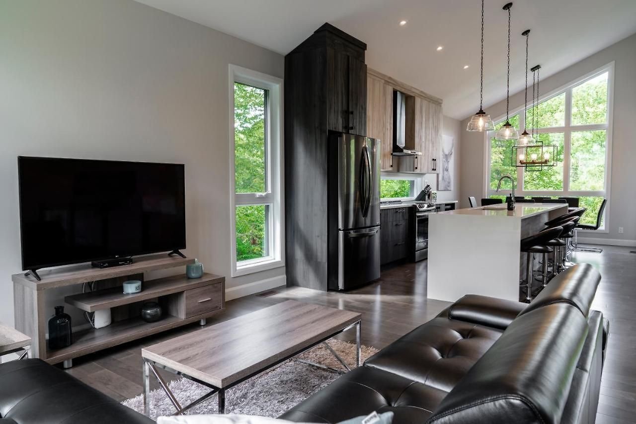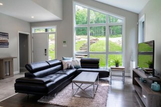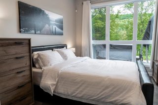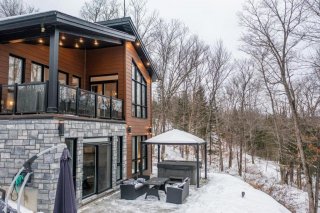 Inclus : Peut-être vendu entièrement meublé et équipé.Canapé gris avec, TV au-dessus du foyer, table basse et console en bois. Cuisine avec îlot, évier, électroménagers (frigo, cuisinière, hotte), tabourets chromés. Table à manger en bois avec 8 chaises en cuir. Chambres avec lits queen, lit superposé, chevets et lampes.Fixtures, luminaires, ustensils,salle de bain avec douche pluie et baignoire vitrée. Mobilier extérieur , BBQ Broil King, balcon