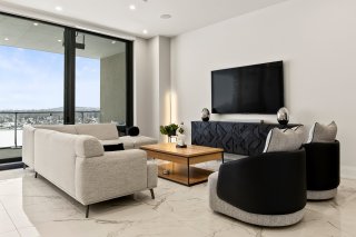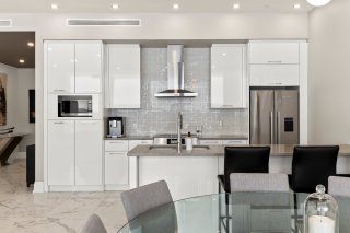 Inclus : Réfrigération, cuisinière, lave-vaisselle, micro-onde, hauts parleurs encastrés, luminaires, stores, tringles, rideaux, aspirateur central et accessoires, rangements, modulaires des walk-in, télévision du salon, système domotique pour son et télévision, borne électrique pour véhicule avec compteur, Horloge dans l'entrée (non connecté) et grand miroir dans le corridor menant aux chambres.