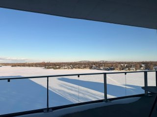 Située sur la prestigieuse Île Paton, cette résidence impressionne par son architecture contemporaine et la qualité de ses finitions. Dès l'entrée, les vastes aires ouvertes et les planchers grand format créent une sensation d'espace remarquable. La cuisine haut de gamme s'ouvre sur un séjour baigné de lumière naturelle, prolongé par un vaste balcon offrant un panorama dégagé sur la Rivière-des-Prairies. Deux chambres avec walk-in, deux salles de bain complètes, deux balcons privés et deux espaces de stationnement intérieurs complètent cette adresse. L'immeuble propose également piscine, sauna et golf virtuel, pour un quotidien d'exception.