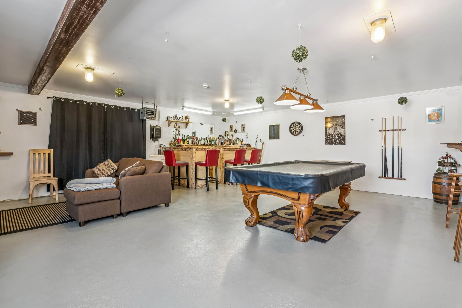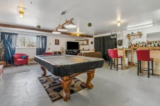 Inclus : appareils de chauffage et d'éclairages , plaque chauffante et four encastré, installation pour aspirateur central (sans le moteur),réservoir d'eau chaude, poêle aux granules, table de pool, installation système d'alarme (non fonctionnel)luminaire du garage, foyer extérieur