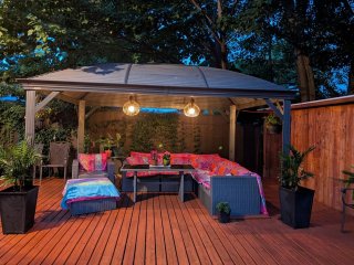 superbe terrasse en bois avec gazebo, parfaite pour les