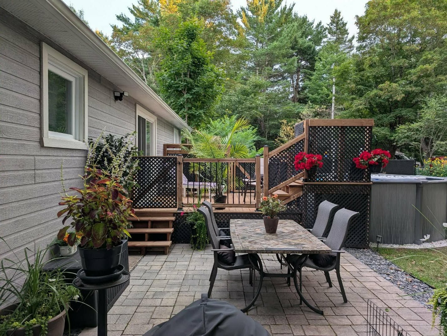 d'arbres matures, dont deux lilas et un pommetier, ajoutant