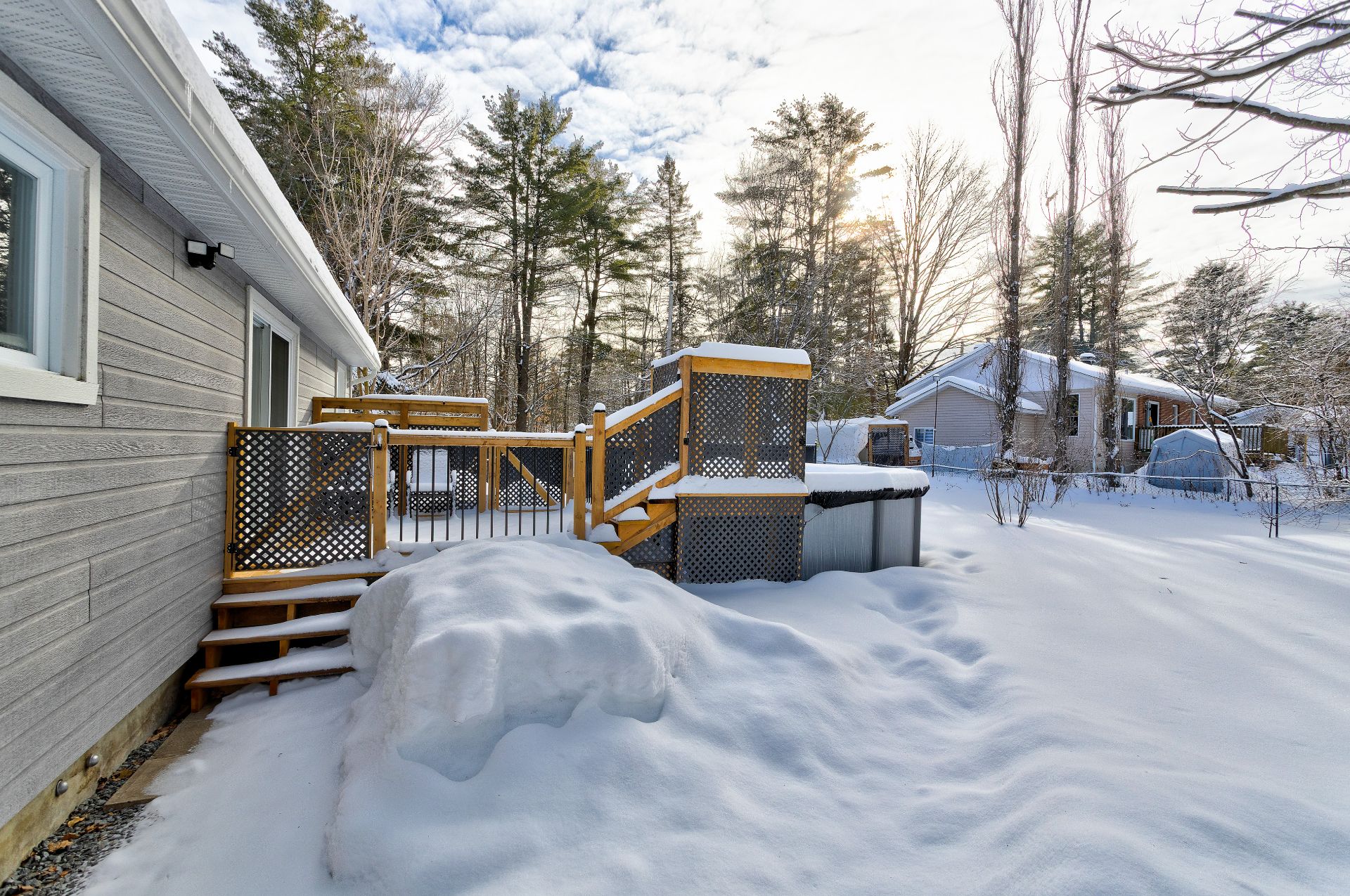fenêtres. De plus, l'entrée latérale de la maison donne