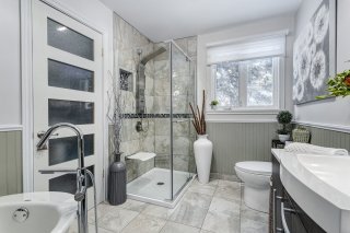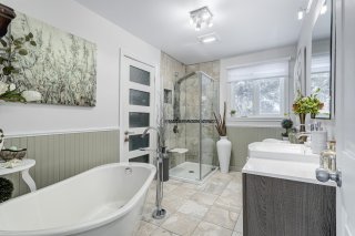 porte-patio. La salle de bain se distingue par sa douche en