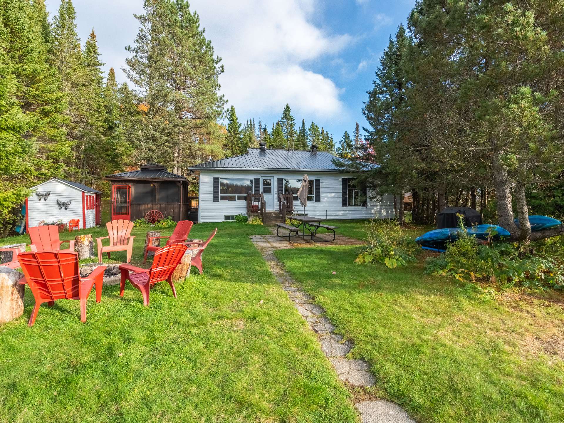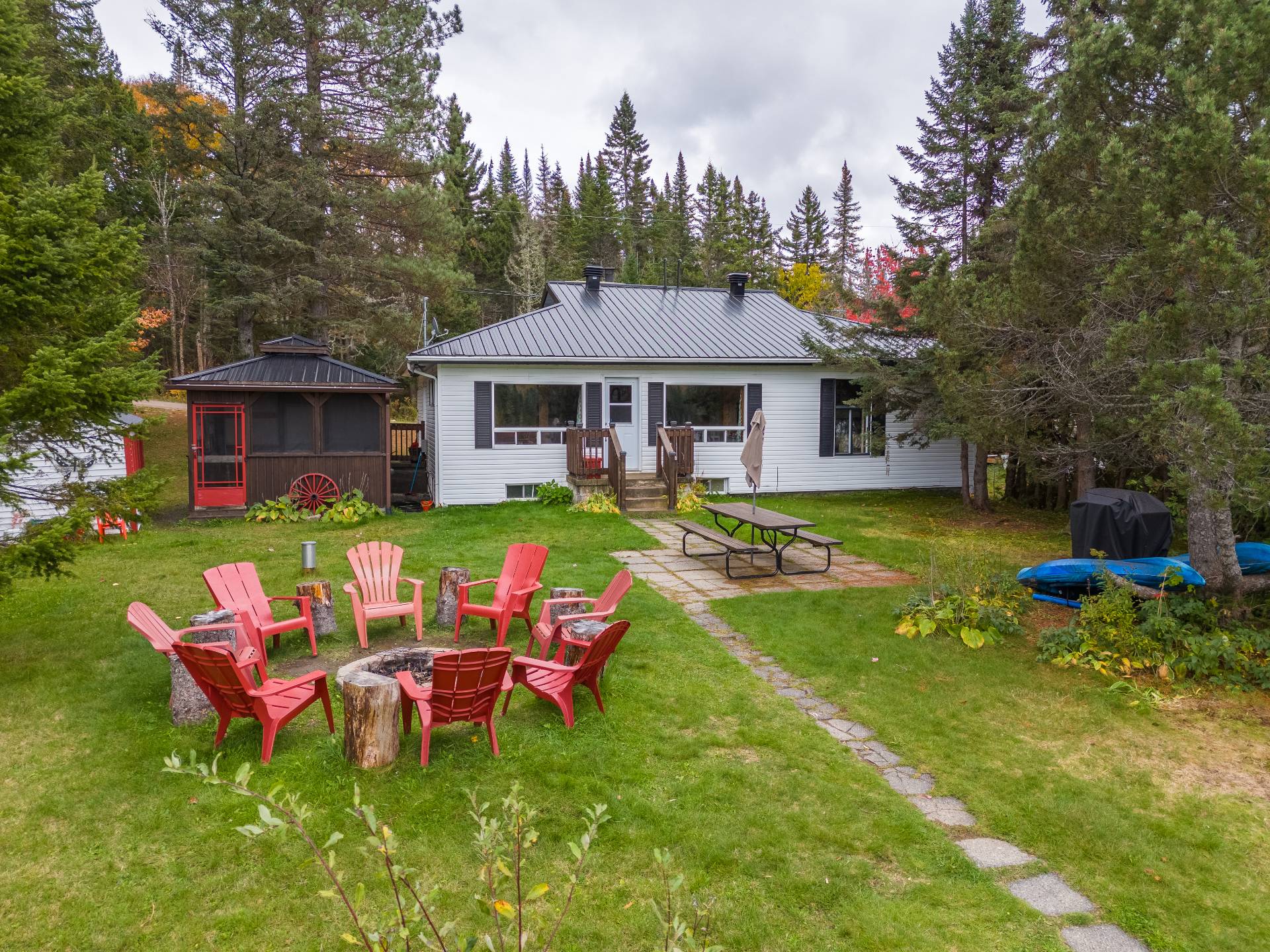 Inclus : Tout meublé et équipé, incluant le pédalo ainsi que le bateau style zodiac, le tout est vendu sans garantie légale de qualité.