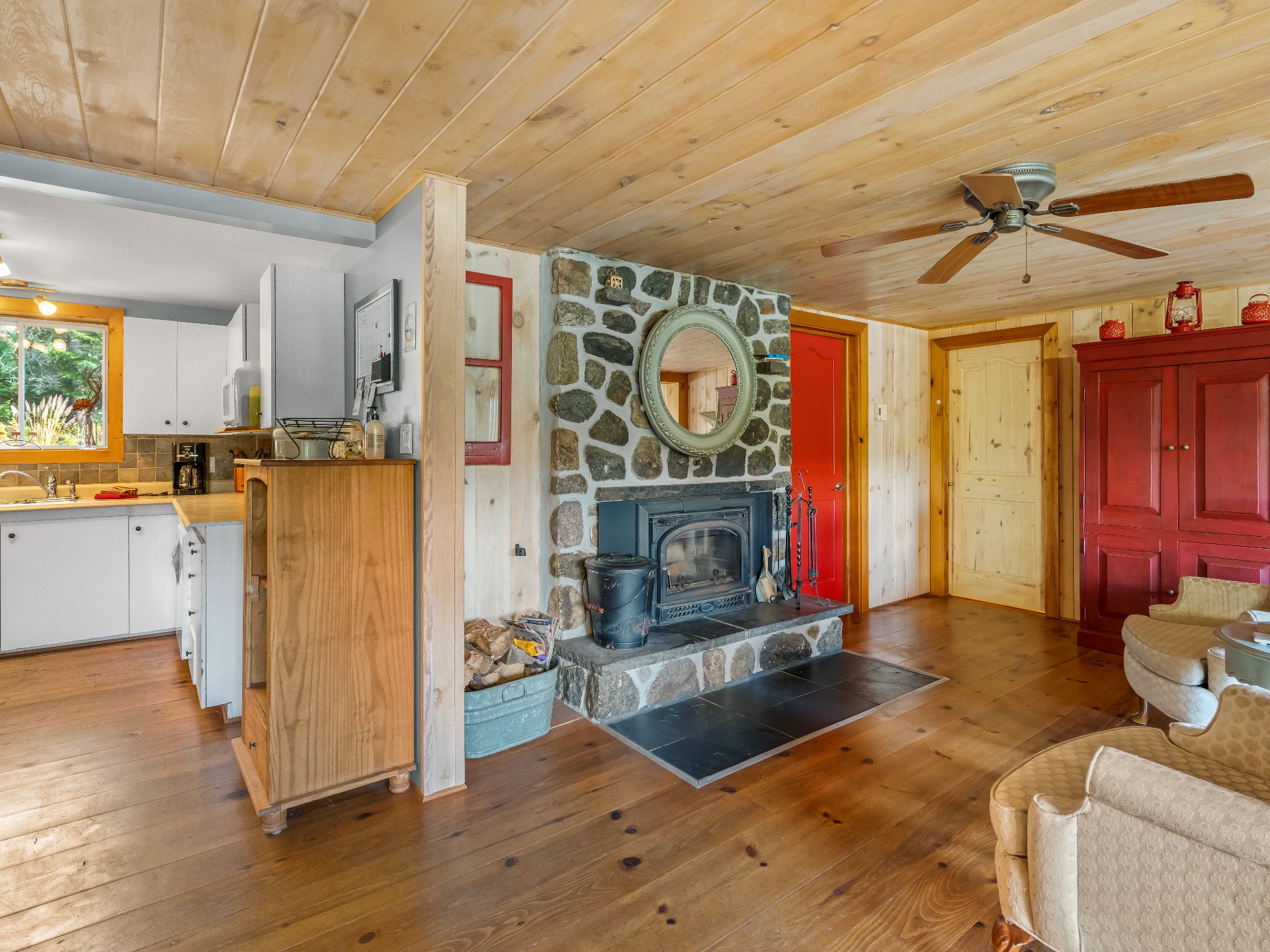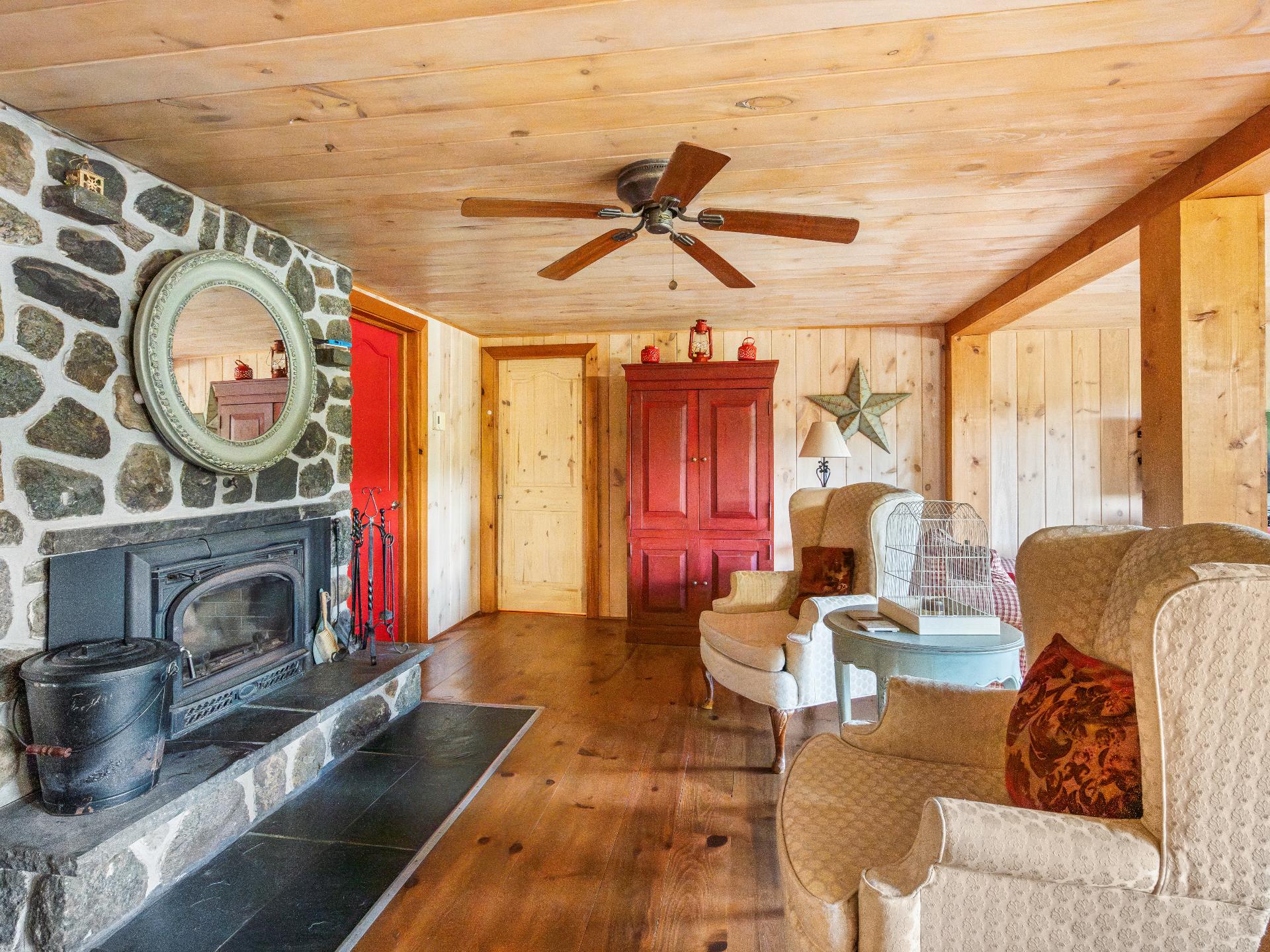 vous vous détendre devant le foyer au bois, chaleureusement