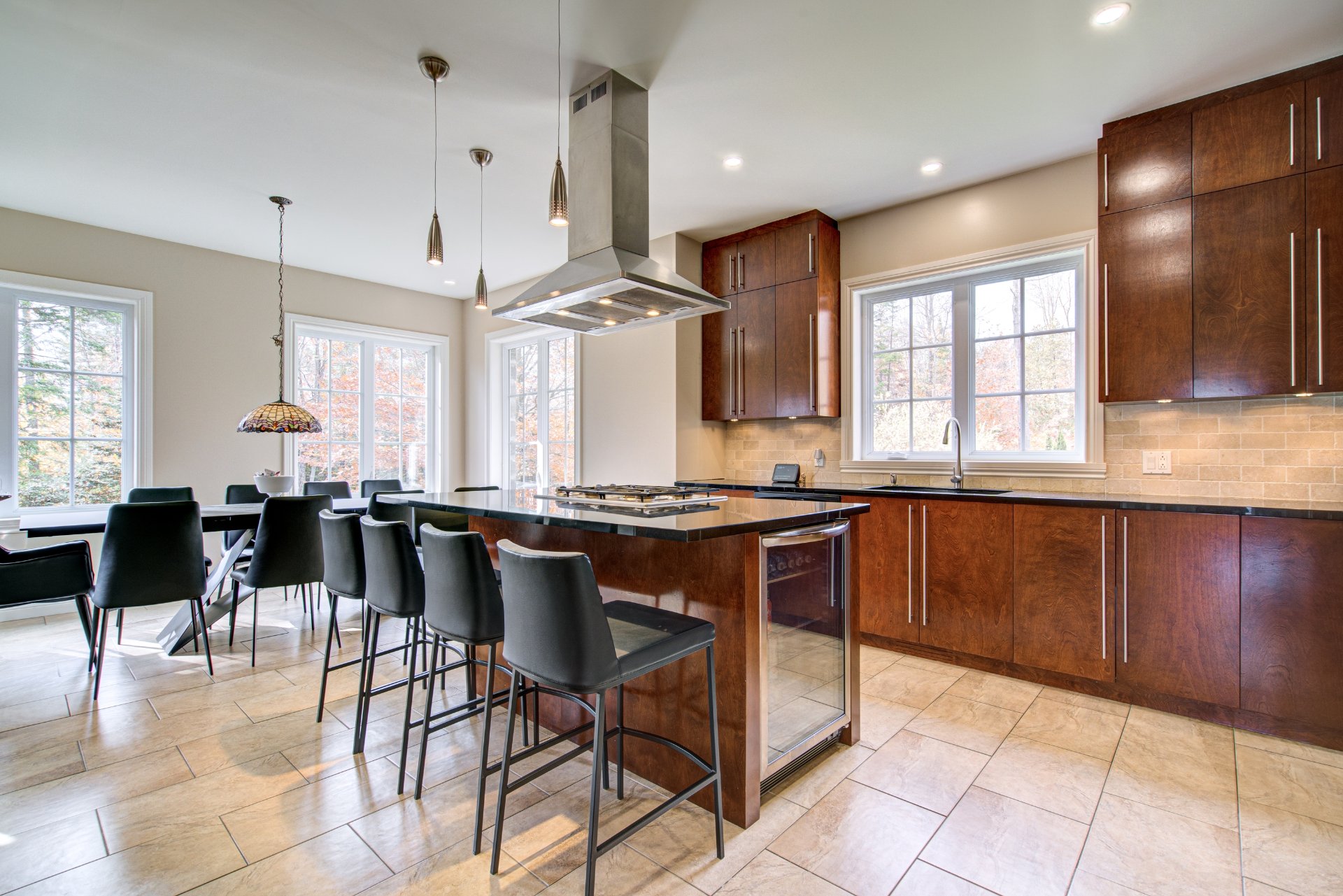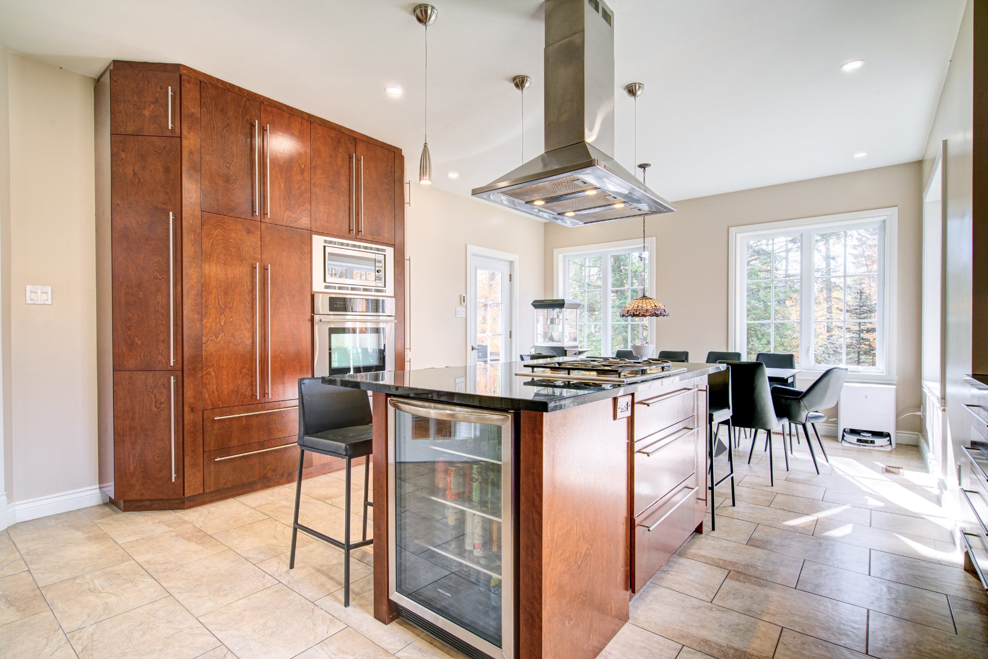 Inclus : Luminaires, rideaux, stores et pôles, lave-vaisselle, cuisinière encastrée, hotte de cuisine, aspirateur central et ses accessoires, système d'alarme, réfrigérateur ainsi que le micro-ondes encastré.