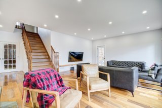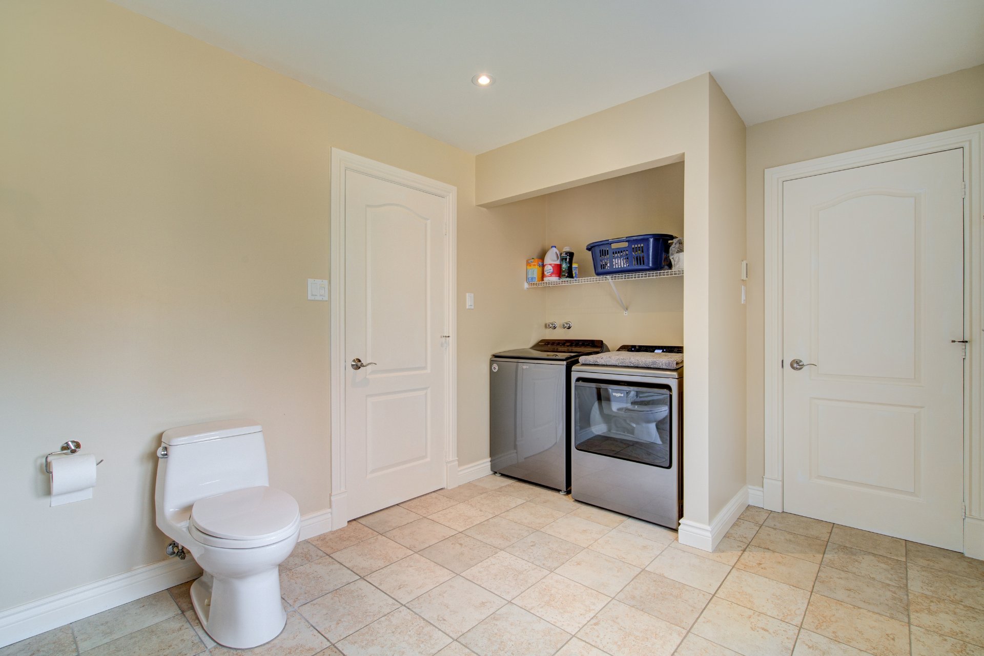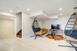 C'est en fait un rez-de-jardin qui bénéficie d'une belle luminosité naturelle. On y retrouve une vaste salle familiale avec accès direct à la cour arrière, offrant un espace pratique selon vos besoins.