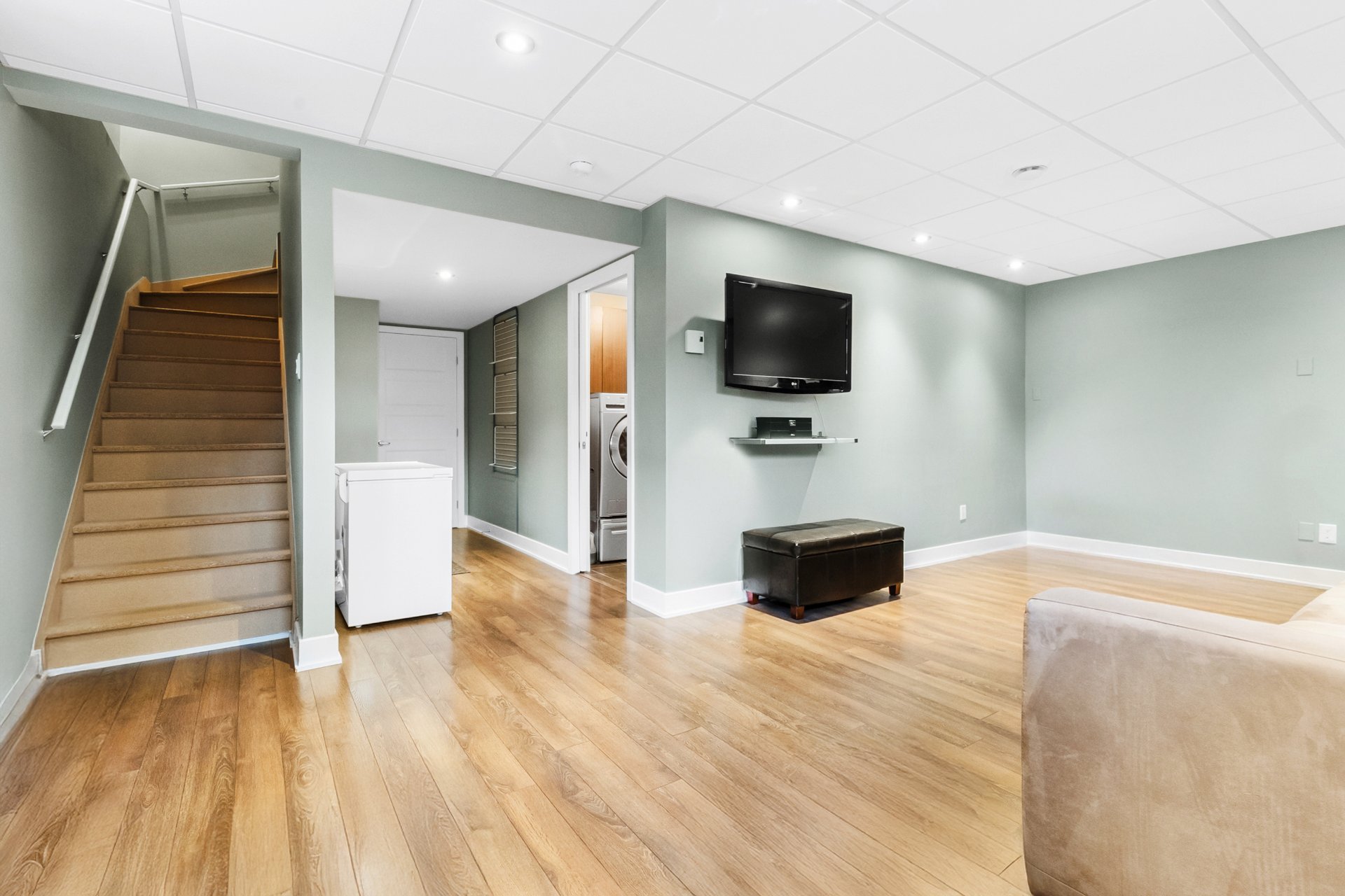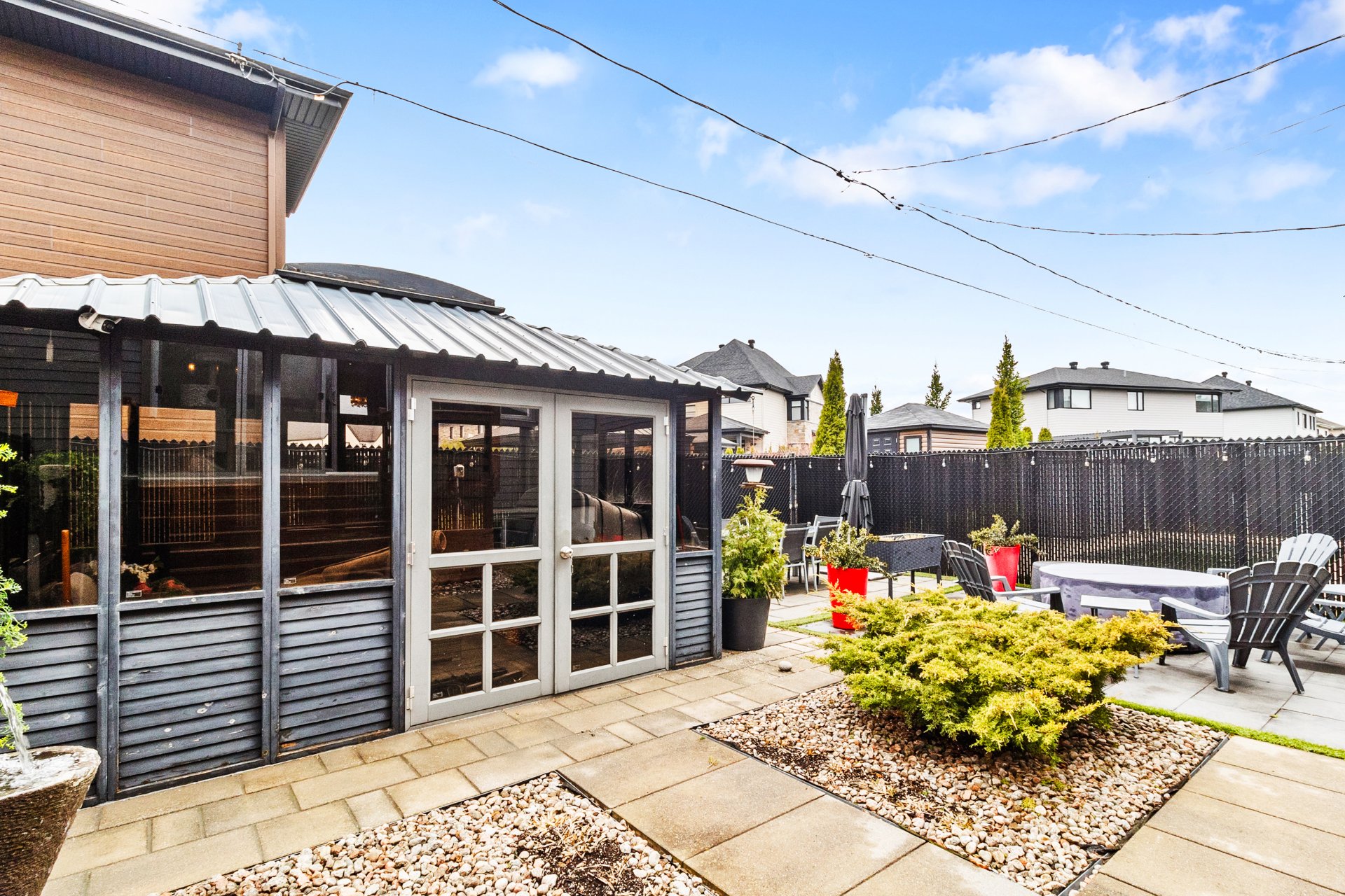 Cette superbe maison, construite en 2014, est située dans un quartier prestigieux, réputé pour sa tranquillité et sa proximité avec toutes les commodités, ce qui la rend idéale pour les familles. Méticuleusement entretenue depuis sa construction, elle offre des matériaux de haute qualité, des plafonds de 2,75 mètres au rez-de-chaussée et bien plus encore. À l'étage, on trouve trois chambres, dont une élégante suite parentale avec salle de bain privative. Elle dispose également de trois salles de bain complètes et d'un cabinet de toilette, une rareté dans ce segment de marché. Le sous-sol spacieux et fonctionnel comprend une salle familiale, une salle de bain complète, une buanderie et un local technique.