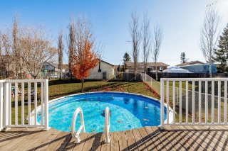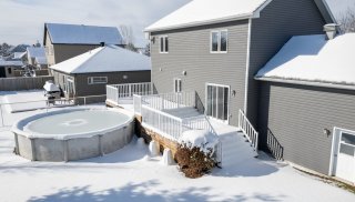 Maison unifamiliale sur deux étages, cuisine avec îlot, salle à manger menant à la terrasse. Trois chambres à l'étage dont une avec walk-in, salle de bains. Sous-sol aménagé avec salle familiale et rangement. Terrain paysagé, terrasse, avec piscine et espace gazonné. Grande allée de stationnement (6 véhicules). Secteur paisible.