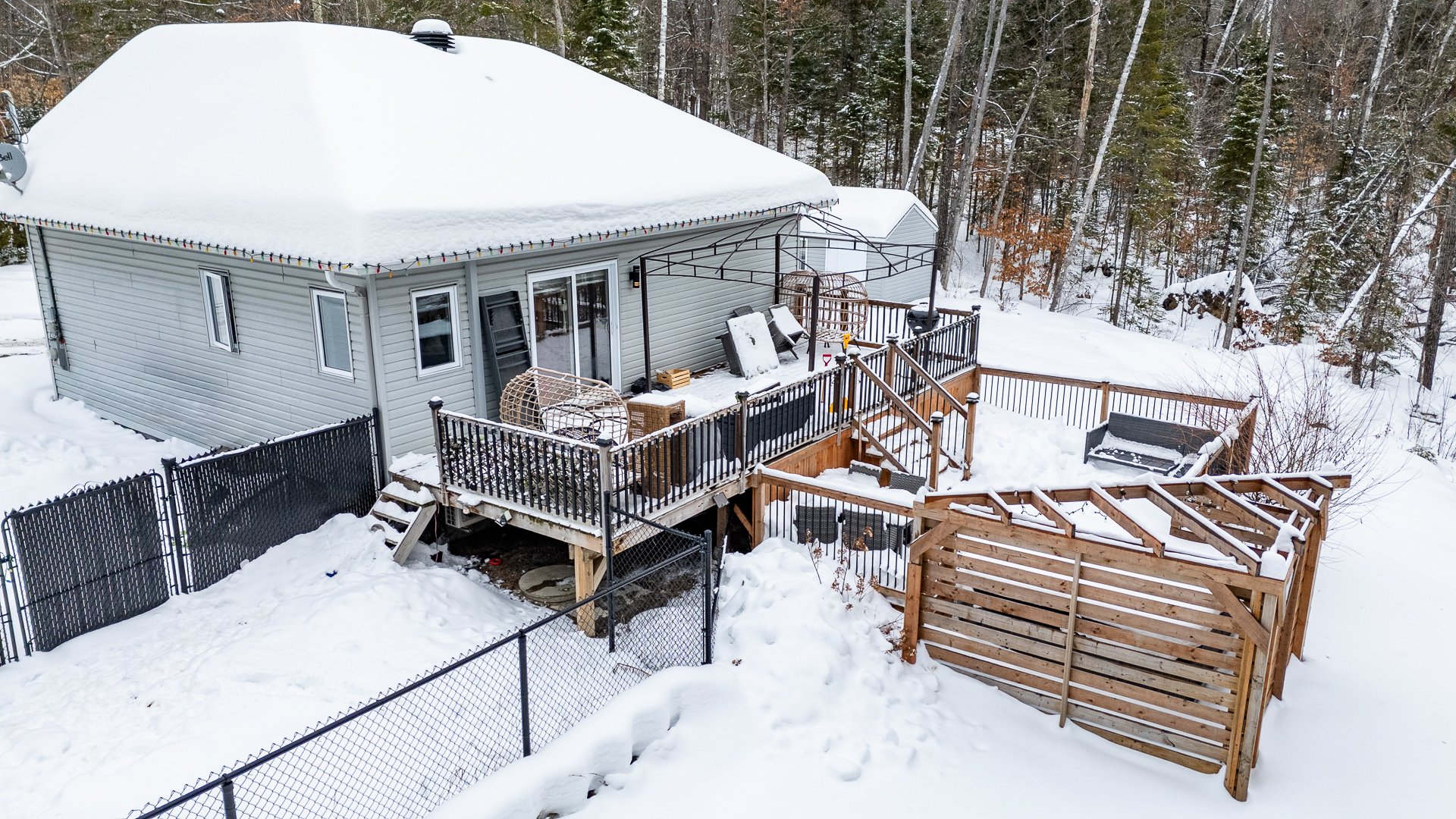 Inclus : Lave-vaisselle de la marque frigidaire sans garantie légale, un tempo simple, un spa de la marque Cal spa 2010 sans garantie légale de qualité ou fonctionnement (actuellement il ne chauffe pas), un micro-onde noir de la marque rca, tous les luminaires, tous les stores, la thermopompe murale, le cabanon.
