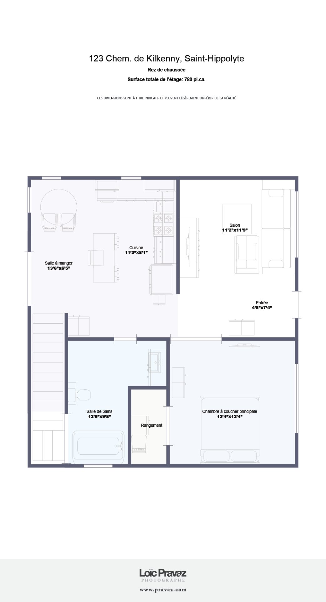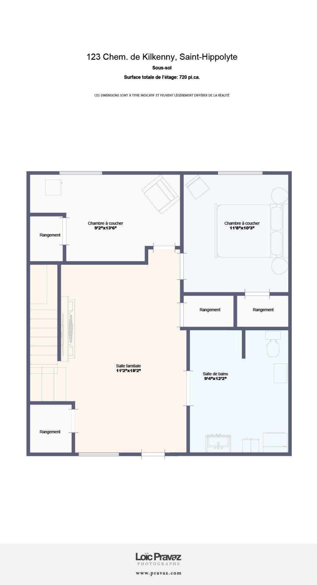 | Salle de bains | 12.2 x 9.4 P | Sous-sol | Béton |