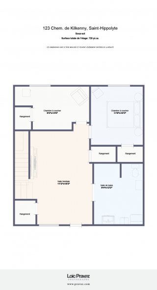 | Penderie (Walk-in) | 4.9 x 3 P | Sous-sol | Béton |