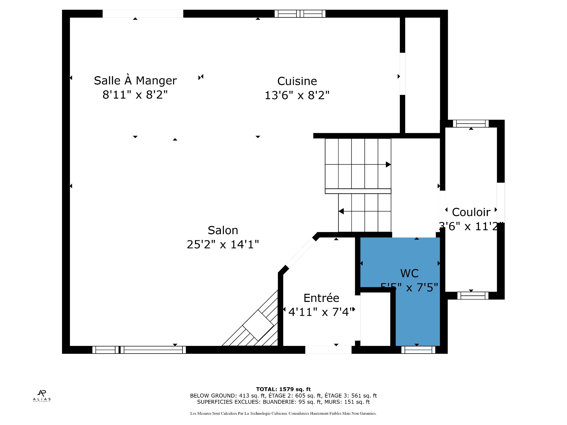 | Salle d'eau | 5.5 x 7.5 P | Rez-de-chaussée | Céramique |
