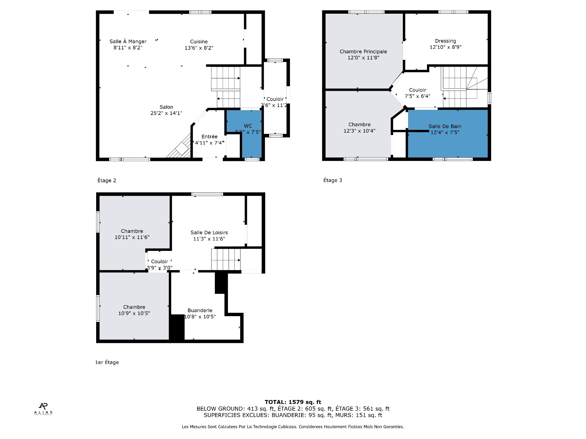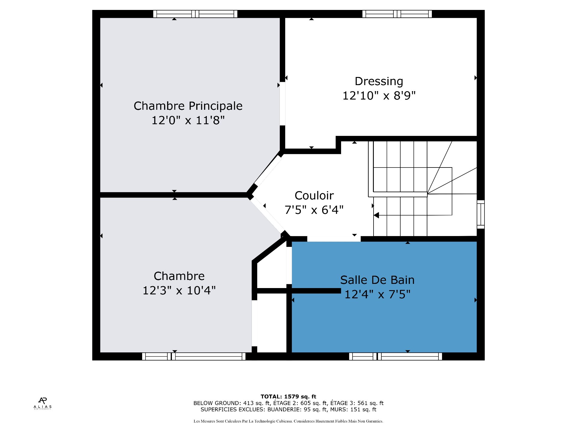 | Salle de bains | 12.4 x 7.5 P | 2ième étage | Céramique |