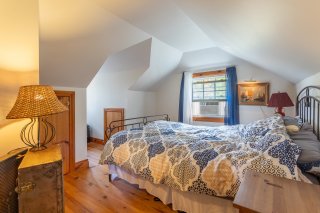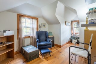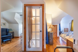 L'étage, accessible par un escalier ouvert, offre la