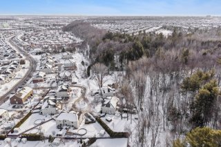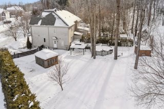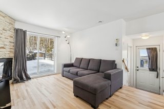 Magnifique maison à étages en rangée située sur un coin, construction 2009, sur un terrain boisé de 10 172 pi². Deux chambres à l'étage plus une au sous-sol. Foyer au gaz et planchers de bois franc. Climatiseur mural pour le confort. Piscine hors terre et aspirateur central inclus. Trois places de stationnement dans un rond-point. Endroit paisible avec boisé à l'arrière, idéal pour profiter de la tranquillité.