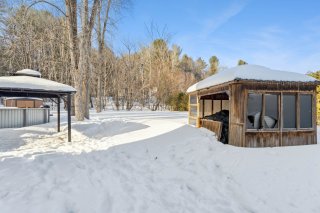 Inclus : Fixtures, stores, tringles et rideaux 1 chauffe-eau, échangeur d'air, air climatisé mural, 1 cabanon, 1 gazebo, piscine hors terre avec chauffe-eau et accessoires, aspirateur central