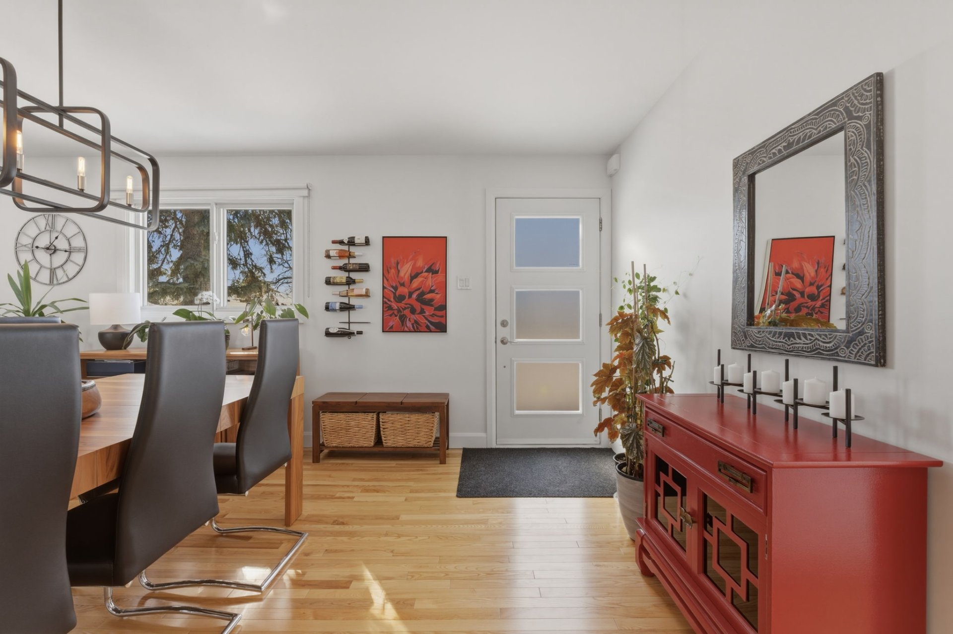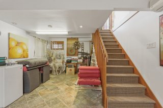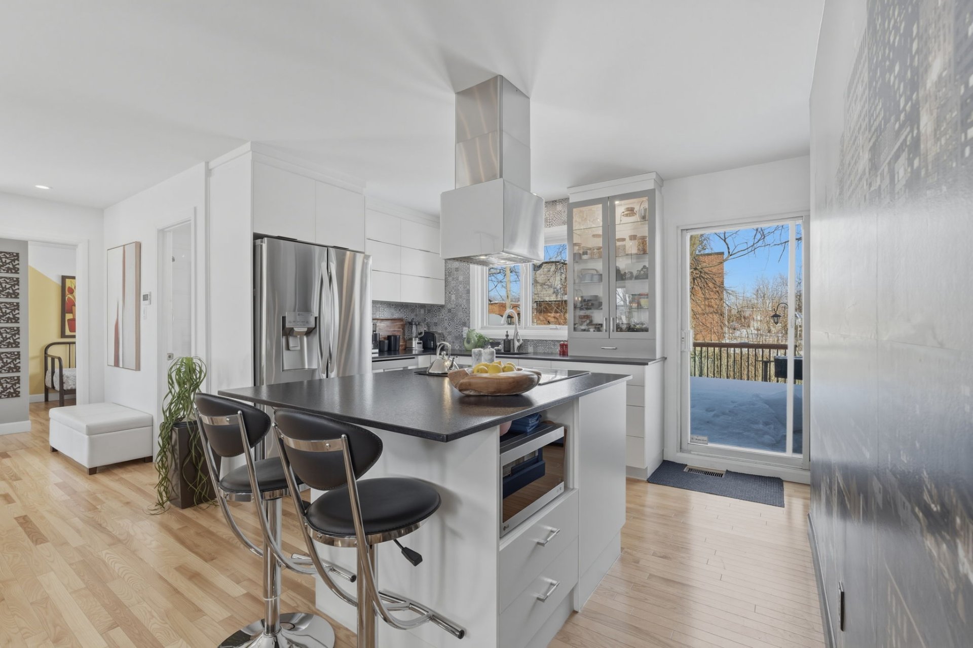 Inclus : Lave-vaisselle, les deux tabourets noirs près de l'îlot dans la cuisine, les deux cabanons extérieurs, les rideaux ] et les toiles sur les fenêtres, et ouvre la porte du garage.