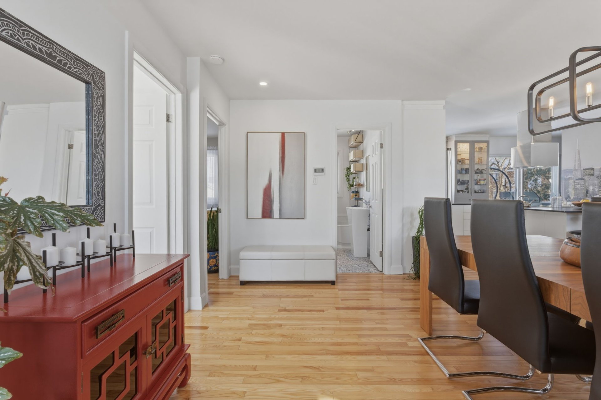 Superbe bungalow rénové à Laval. Situe sur un coin de rue calme dans un quartier familial, découvrez une propriété lumineuse, aérée, au rez-de-chaussée entre le salon, la salle à manger et la cuisine, 2 chambres de bonnes dimensions et une salle de bain moderne. Sous-sol entièrement aménagé avec plancher d'ardoise, salle familiale, grande salle de lavage et plusieurs rangements. Garage intégré, chauffé et isolé, grande cour clôturée et privée avec patio en bois traité 14 x 16. Rénovations majeures réalisées (toiture, cuisine, planchers, salle de bains, électricité, plomberie). Une opportunité clé en main dans un quartier familial!