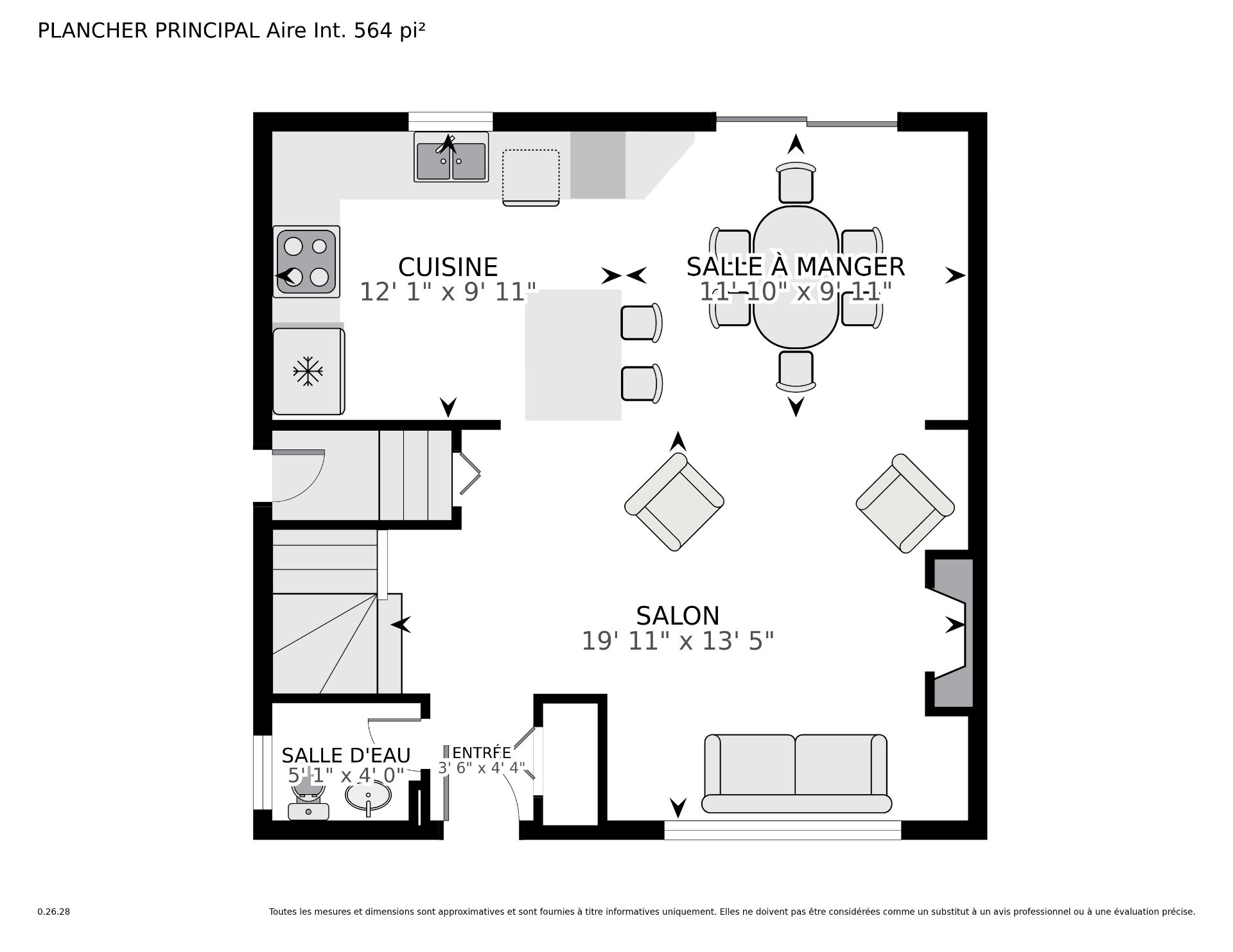 | Salon | 20.0 x 13.5 P | Rez-de-chaussée | Bois |