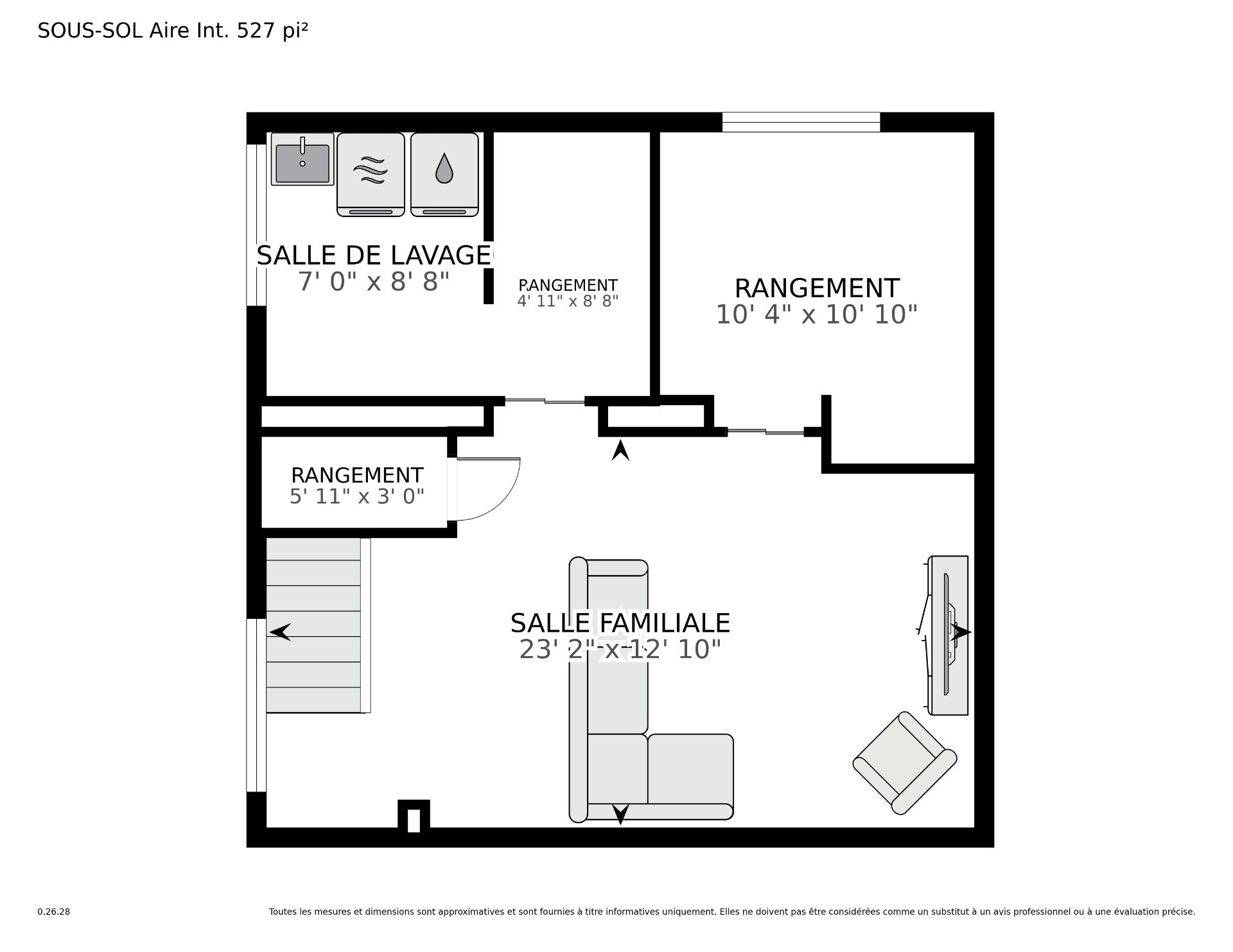 | Salle de lavage | 8.8 x 7.0 P | Sous-sol | Céramique |