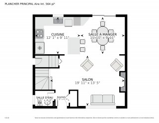 | Salle à manger | 11.10 x 10.0 P | Rez-de-chaussée | Bois |