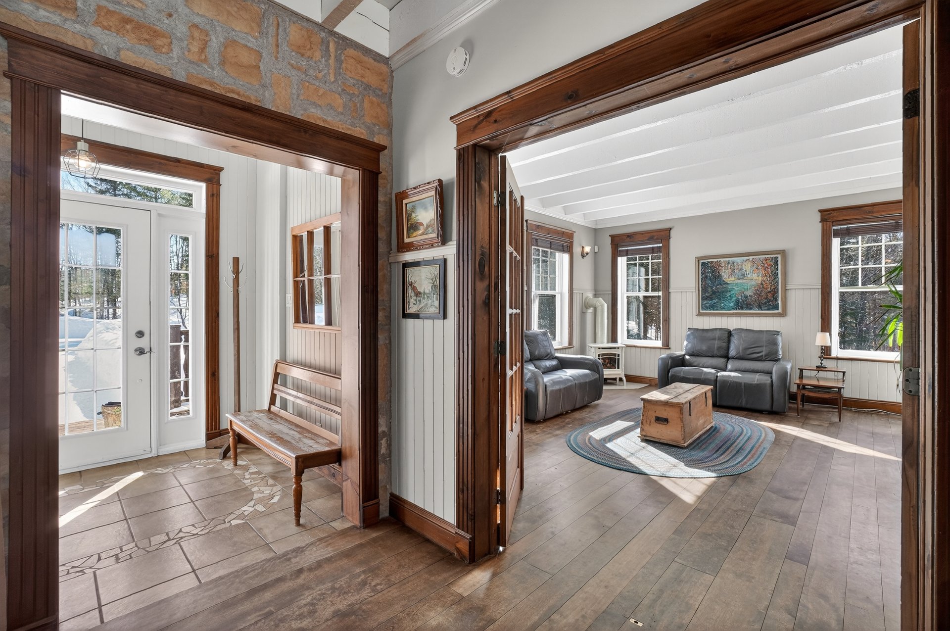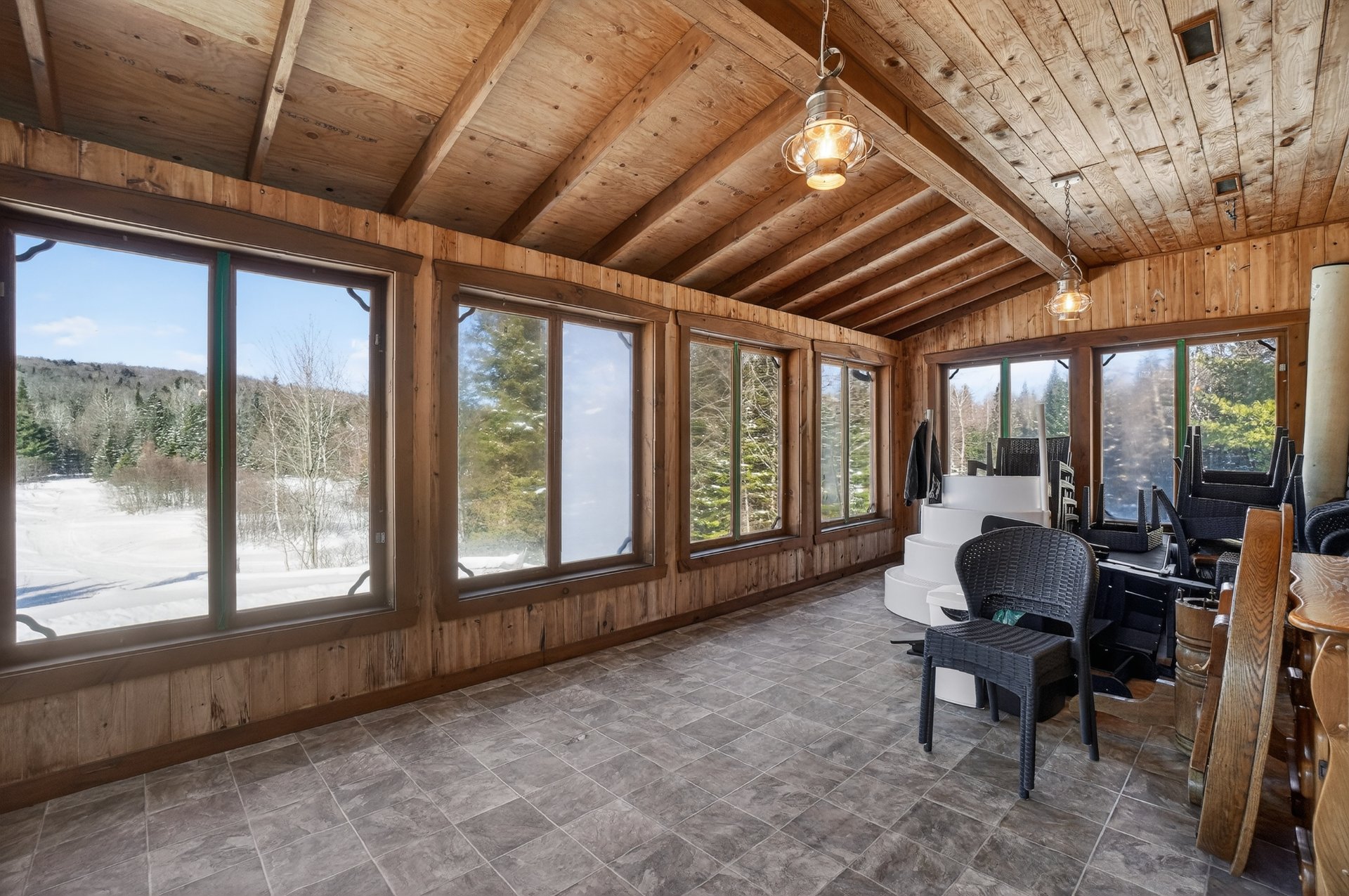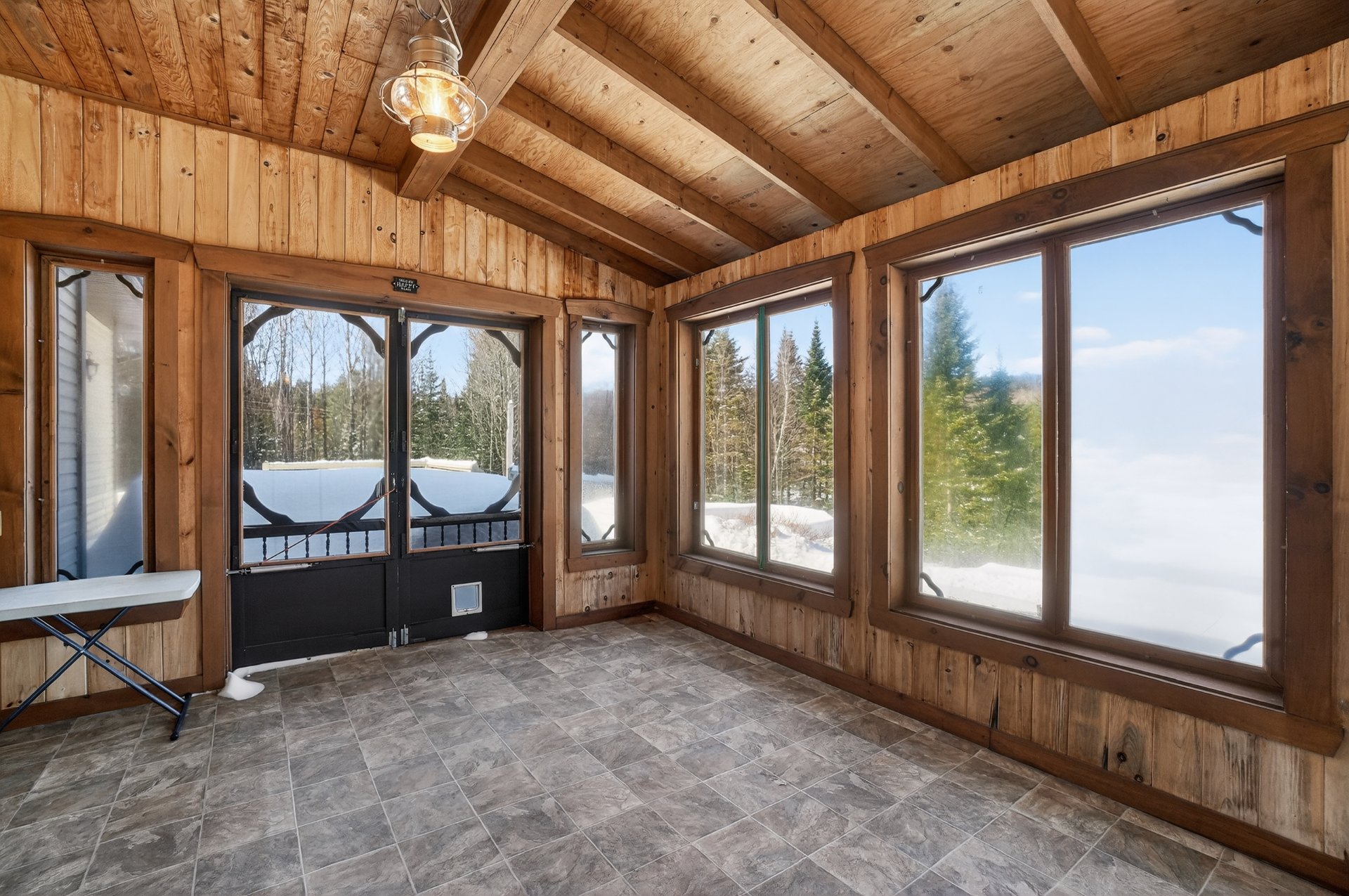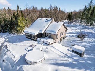 Domaine privé exceptionnel de 11,2 acres, nichée au bout d'un chemin privé et entourée de forêt mature. Plus de 1 km de sentiers entretenus, étang privé, pelouse ouverte et faune abondante. La maison comprend 3+2 c-à-c, 3 sdb complètes, planchers de bois et foyer RSF Opel à combustion lente relié aux conduits pour un chauffage efficace. Spacieuse véranda trois saisons surplombe l'étang, offrant un lieu idéal pour se détendre. Garage détaché isolé (2 voitures), garage utilitaire, remises à bois et entrée pour génératrice. Idéale pour les amateurs de nature à proximité des services et stations de ski Morin-Morin-Heights, Saint-Sauveur.