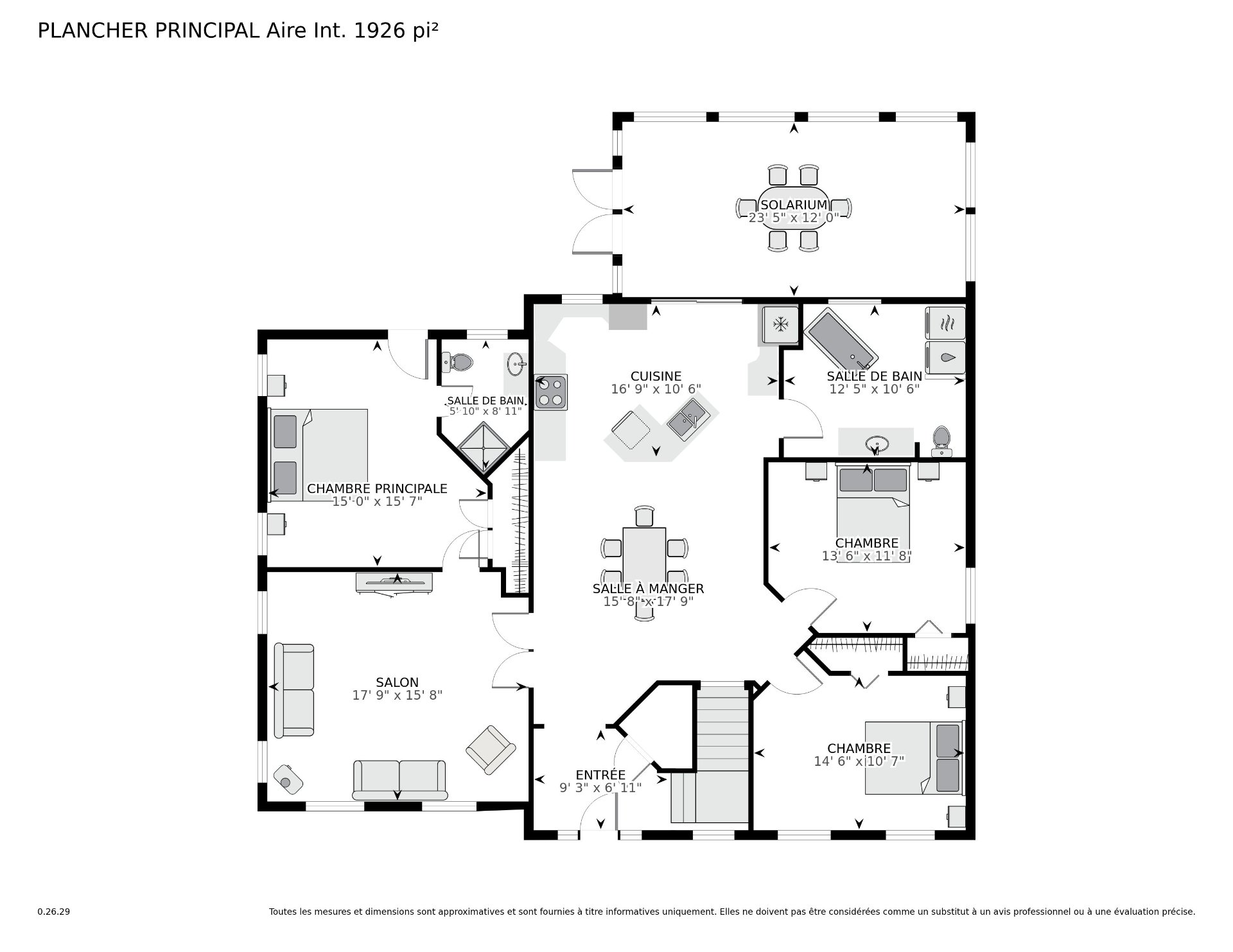 | Solarium | 22.10 x 11.5 P | Rez-de-chaussée | Linoléum |