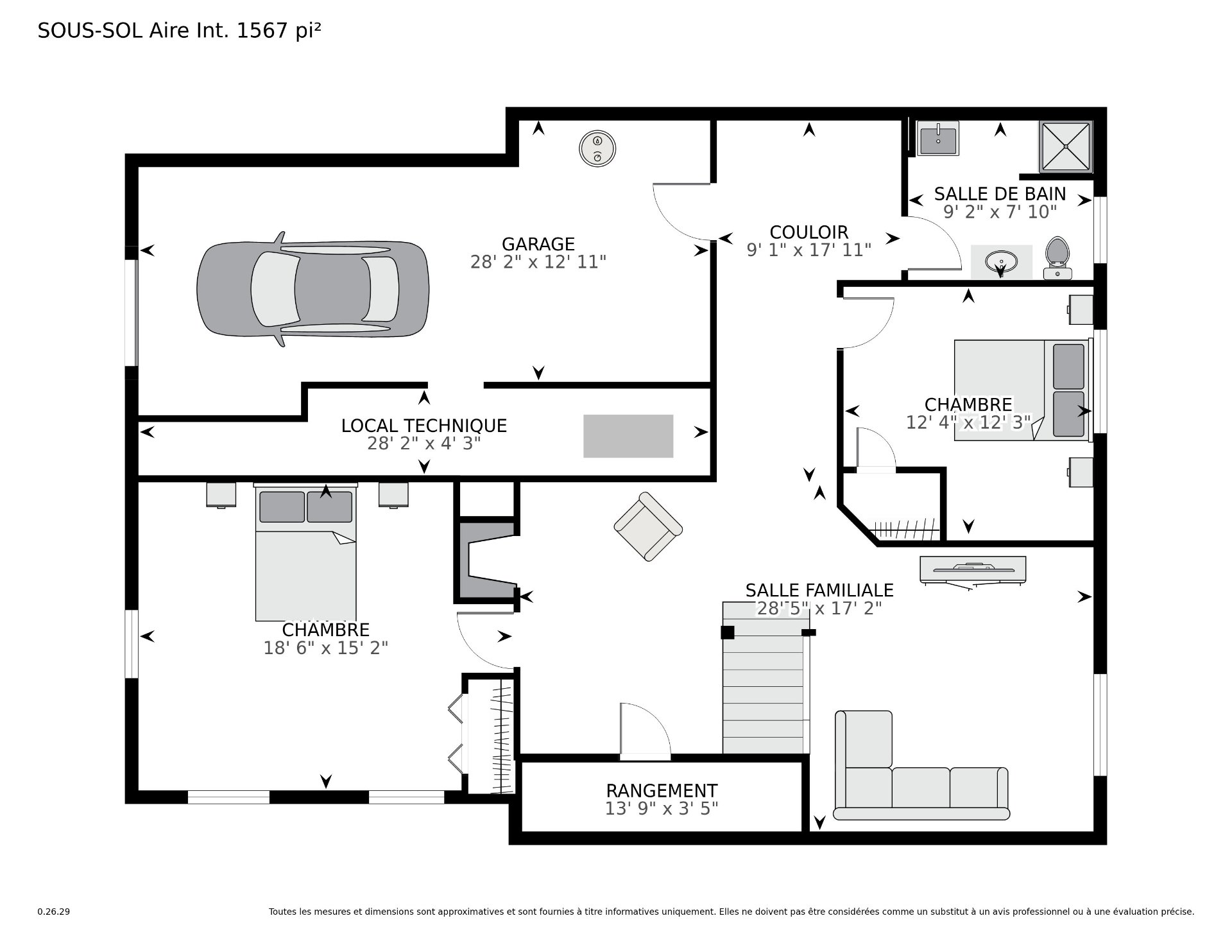 | Salle de bains | 8.10 x 7.6 P | Sous-sol | Céramique |