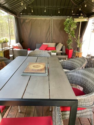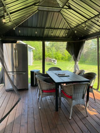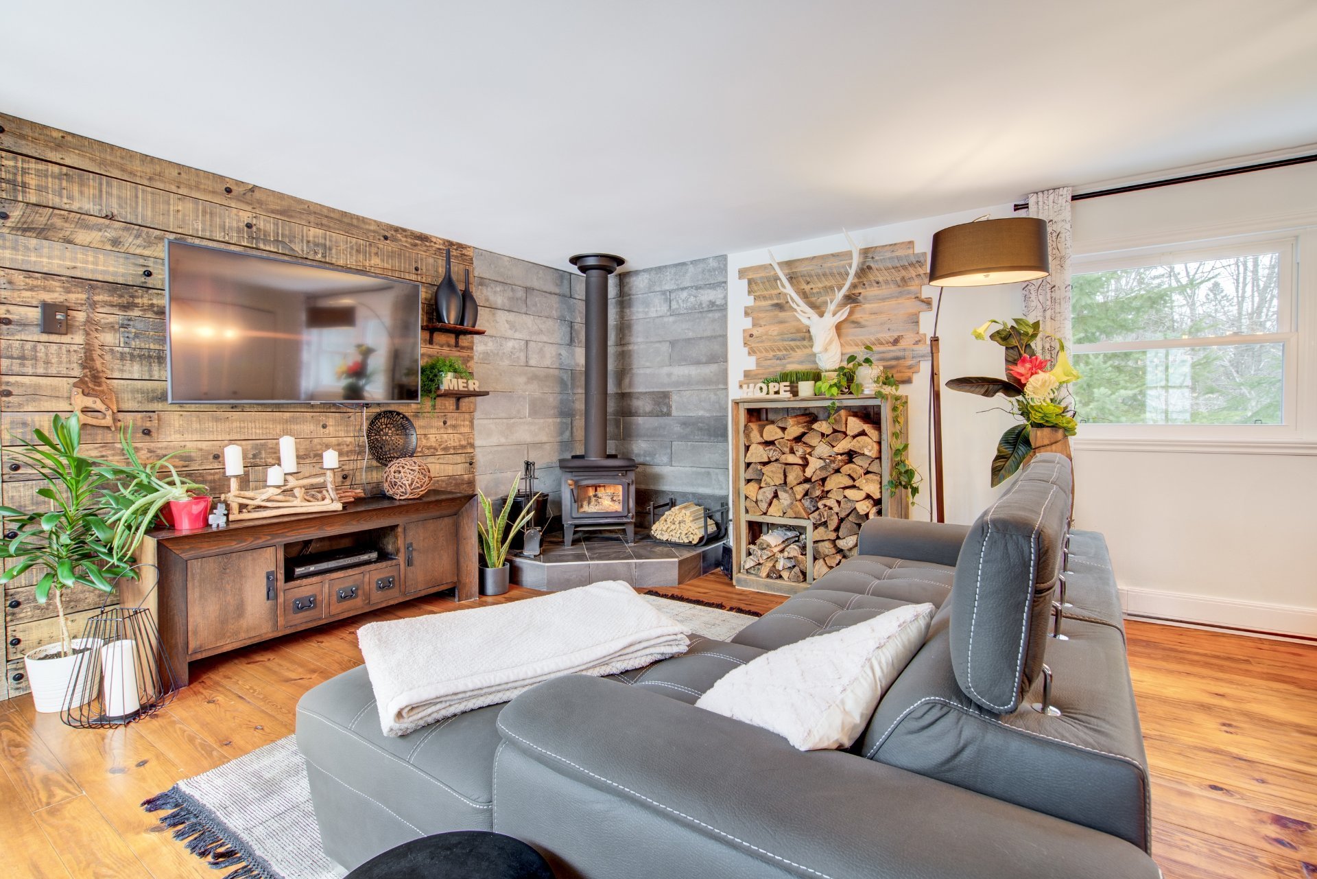 Exclus : (Chambre secondaire) Congélateur et meuble antique. (Chambre des maitres) Échelle, meuble antique et coffre. (Salon) Article de décoration et cadre de chevreuil. (Cuisine) Articles de décoration. (Cabanon) 3 chandeliers et un vase blanc.