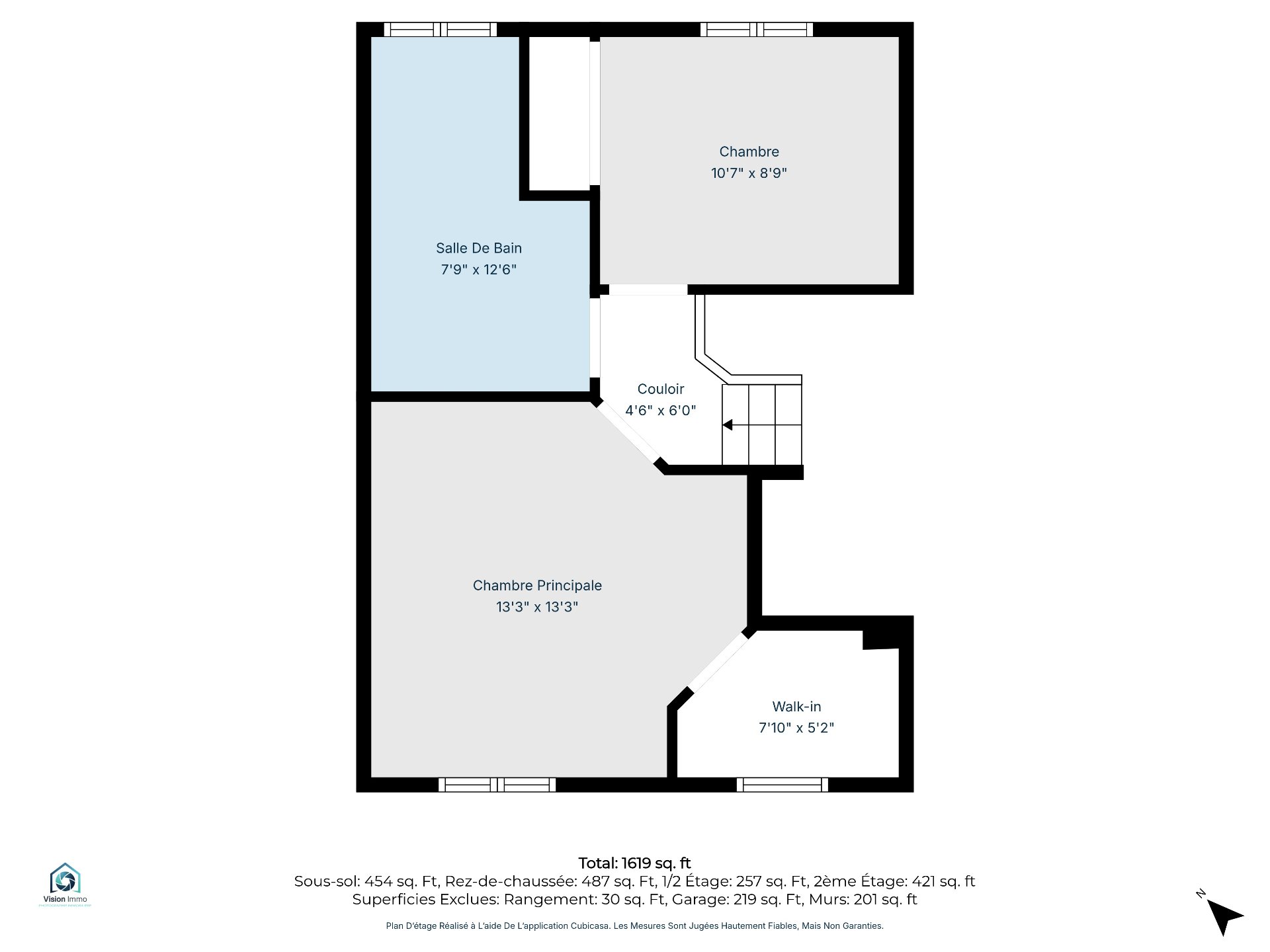 | Chambre à coucher principale | 13.3 x 13.3 P | 2ième étage | Bois |