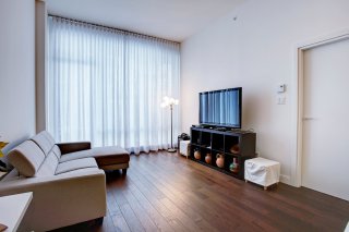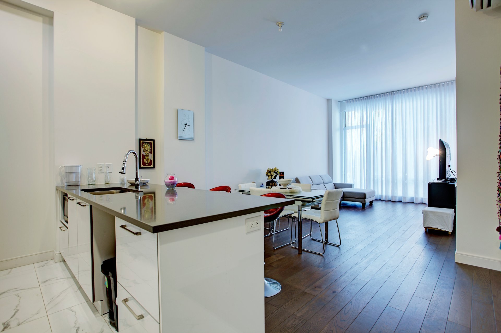 Condo très éclairé,01 chambre à coucher, concept à aire ouverte,Plafonds de 12 pieds,emplacement exceptionnel bâtiment insonorisé-Piscine-GYM-01 stationnement extérieur et Locker -À distance de marche du Carrefour Laval tous les services, cliniques, banques, restaurants, transport en commun.C'est simple Vous avez tout !!