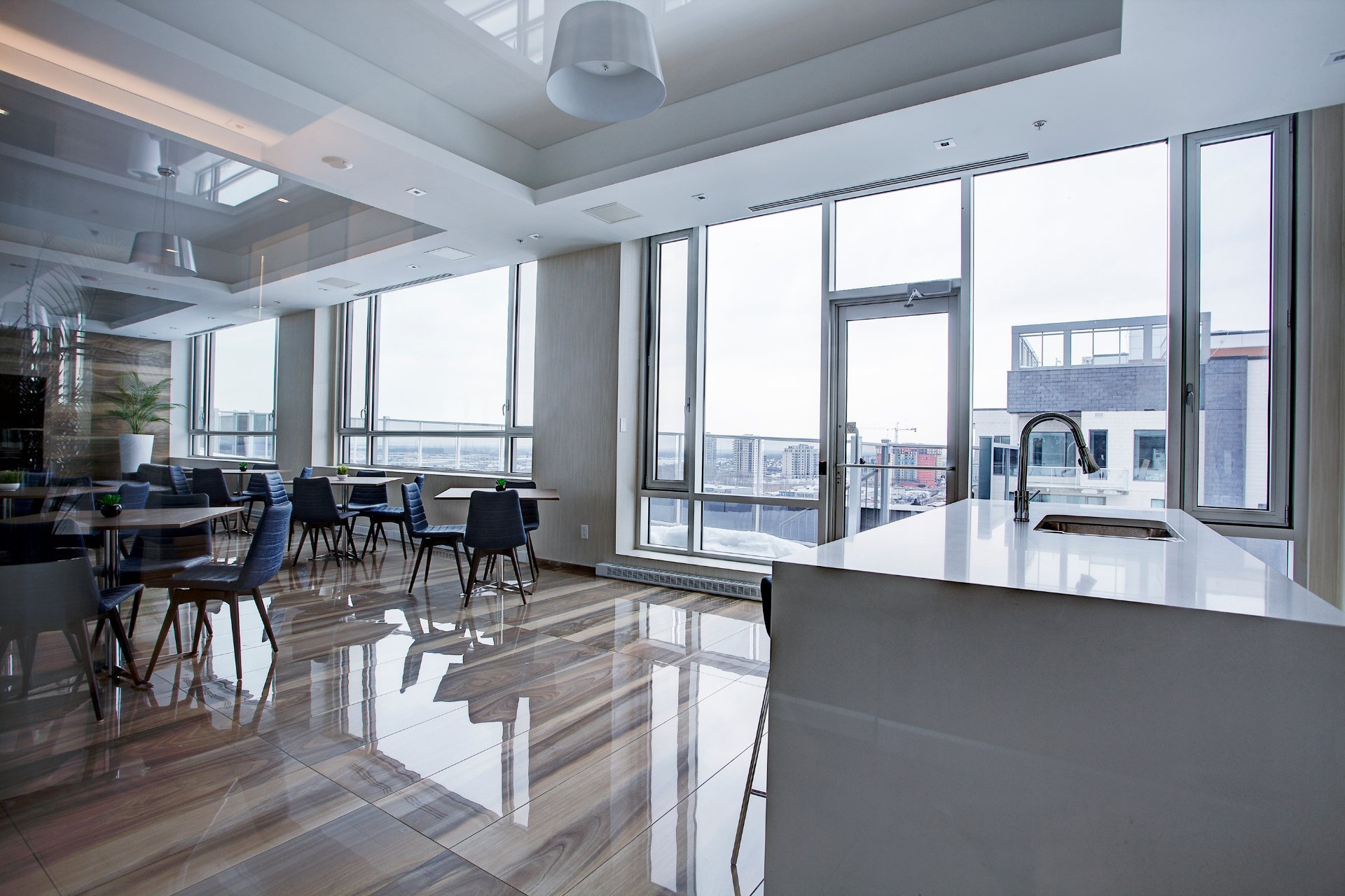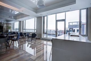 Les espaces communs incluent: Grand hall d'entrée avec cheminée, Piscine sur le toit avec terrasse, vestiaire, salle de bain et douche, espace barbecue, Style chalet avec cuisine complète, salle de d'exercice commune, 2 ascenseurs, Sécurité par cameras, intercom, 1 Stationnement extérieur 66 et Espaces de rangement C 31.