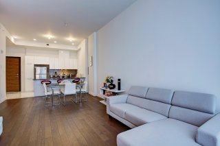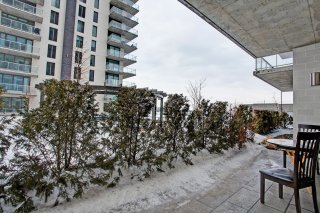 Caractéristiques du bâtiment, Immeuble de 12 étages, Grand terrasse - Condo du premier étage avec 12 pied de plafond - Bâtiment adapté pour mobilisation réduite, Terrain paysagé avec système d'irrigation automatique structure en béton armé très bien insonorisé.