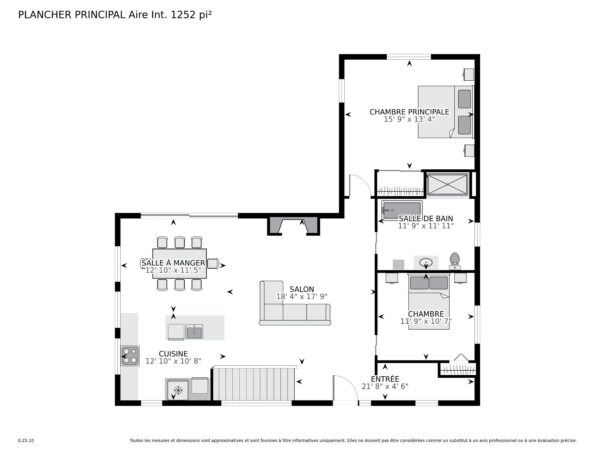 | Salon | 18.4 x 17.9 P | Rez-de-chaussée | Plancher flottant |