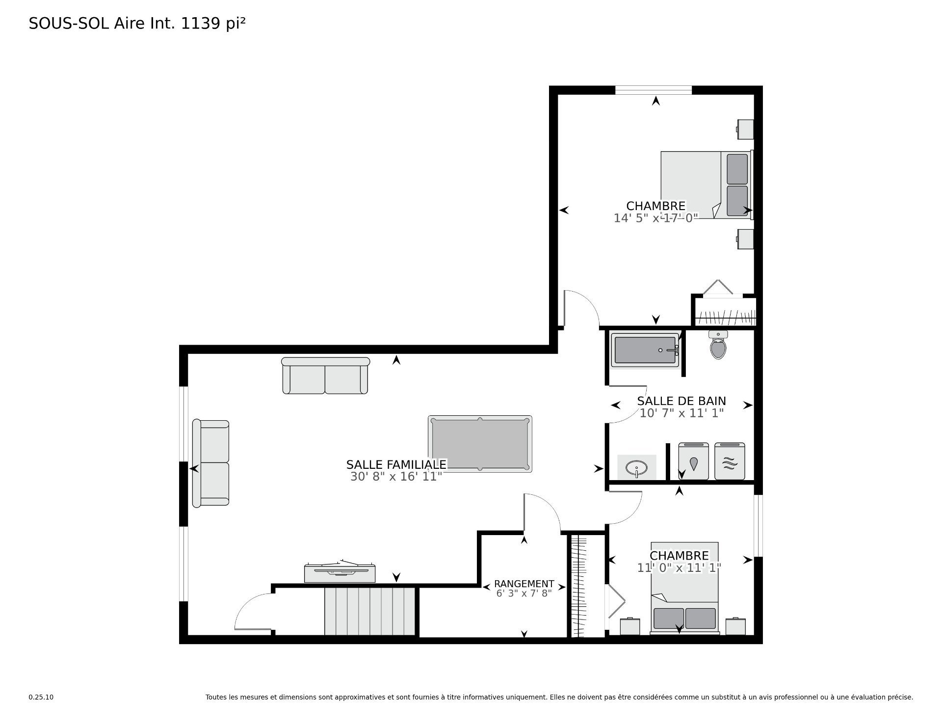 | Chambre à coucher | 14.5 x 17.0 P | Sous-sol | Plancher flottant |