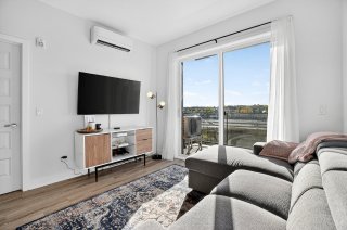 Superbe unité une chambre au concept ouvert, lumineuse et bien pensée. Cuisine avec comptoirs en quartz et électroménagers en acier inoxydable, thermopompe murale, laveuse/sécheuse incluses et grand balcon privé avec belle vue dégagée plein sud. Stationnement extérieur et rangement intérieur inclus. À 5 min à pied des commerces, cafés, gym et parcs. À moins de 10 min en voiture des écoles De L'Aubier, L'Escale et Saint-François-de-Laval. Accès rapide aux autoroutes 19 et 440 en 30 secondes.