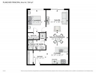 Salon | 11.0 x 10.10 P | 3ième étage | Plancher flottant |