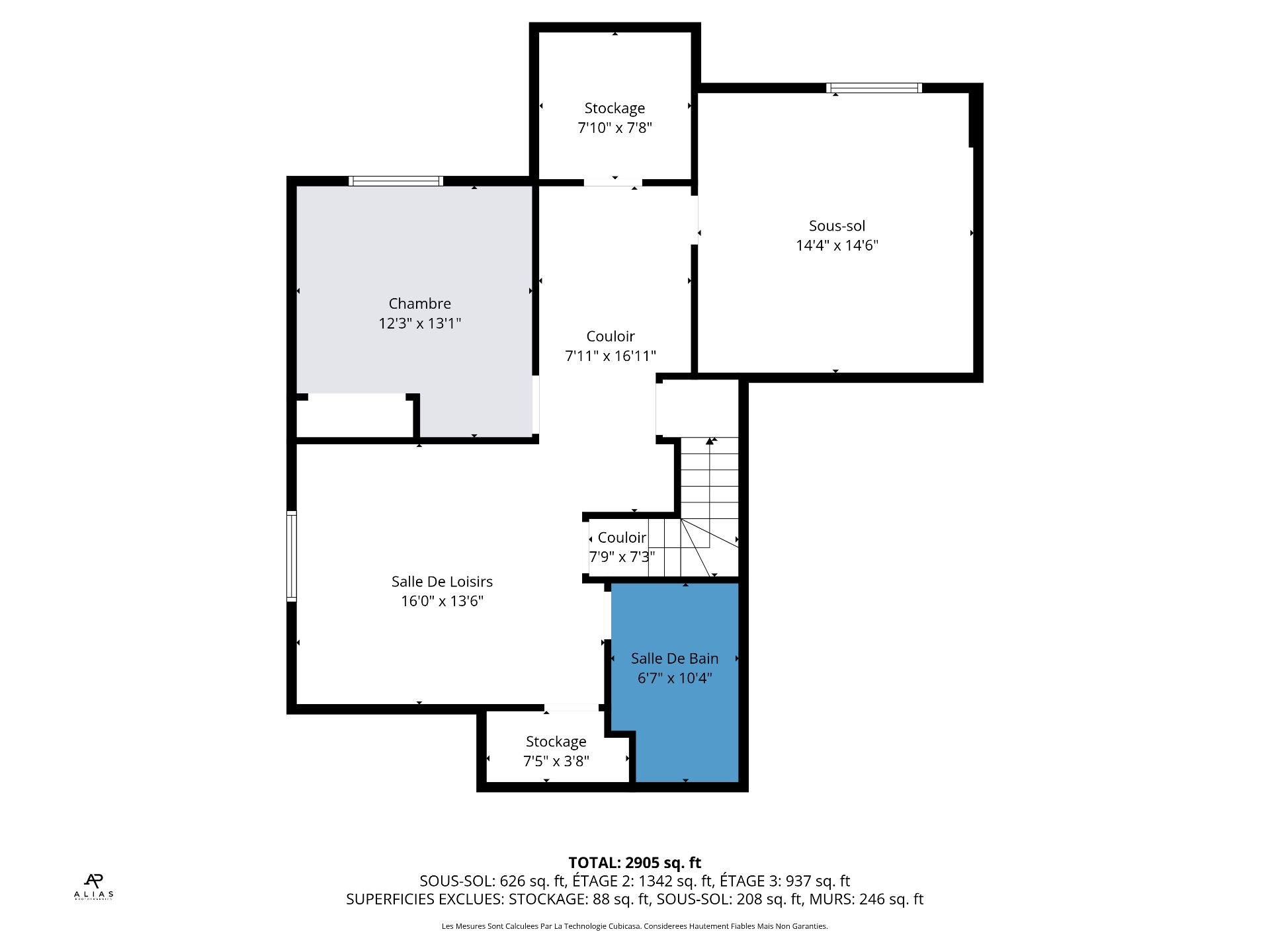 | Salle de bains | 7.5 x 3.8 P | Sous-sol | Céramique |