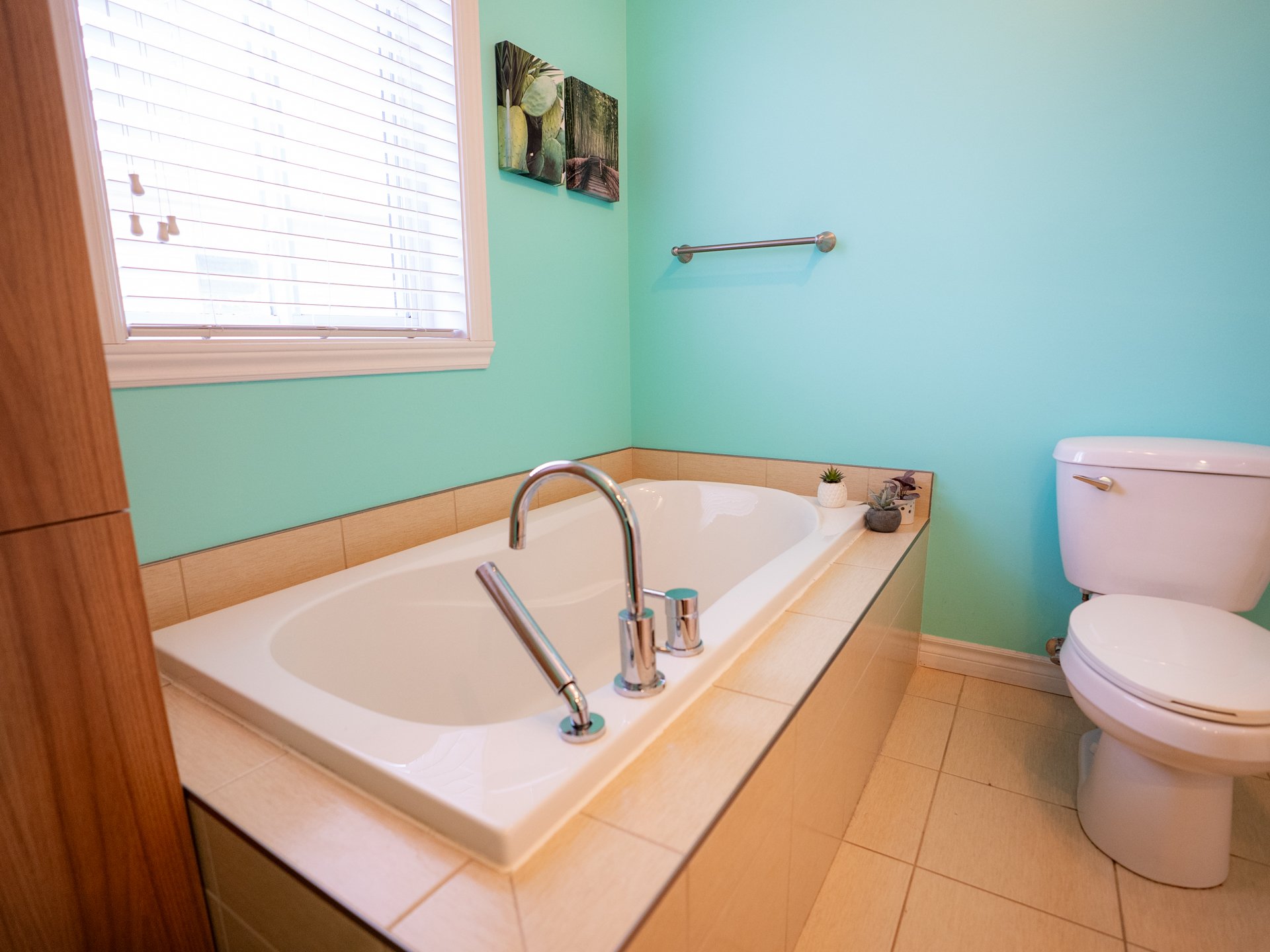 Magnifique maison de plain-pied, située dans un secteur calme et recherché de Saint-Lin, bien entretenue, offrant 4 chambres et 2 salles de bain, avec possibilité d'une 5e chambre au sous-sol. Grande aire ouverte lumineuse incluant le salon, la salle à manger et la cuisine, donnant accès à la terrasse couverte et à la cour avec piscine et spa, entièrement clôturée. Les pièces de vie sont spacieuses. Le sous-sol est doté d'une grande salle familiale, d'un salon, d'une chambre et d'une salle de bain. Possibilité de stationner 5 voitures dans l'allée. À proximité des écoles, des commerces, et à environ 15 minutes des autoroutes 25 et 640.