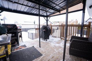 Inclus : Spa, accessoires de piscine, abri mural, store (salle de bain RDC/ salon RDC 3x/ salle à manger/ chambre secondaire/ salle de bain sous-sol/ toile des fenêtres du sous-sol 3x), tabouret de cuisine, abri Tempo, BBQ au propane.